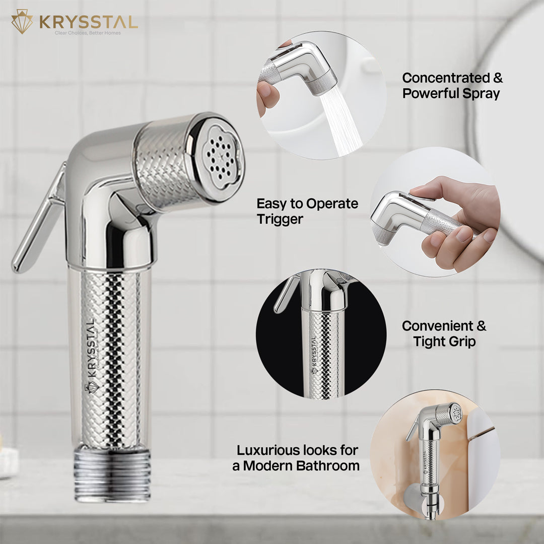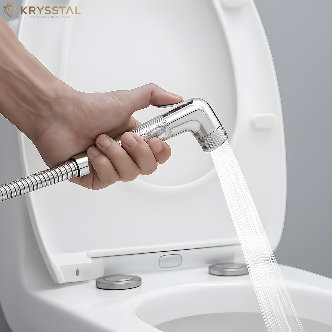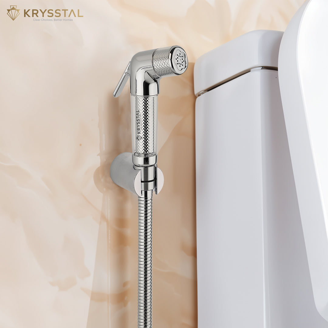 Brass health faucets are preferred for their sturdiness and resistance to rust and tarnish, making them ideal for long-term use in humid bathroom conditions. KRYSSTAL’s brass faucets combine functionality with a premium design, enhancing the overall look of your bathroom.