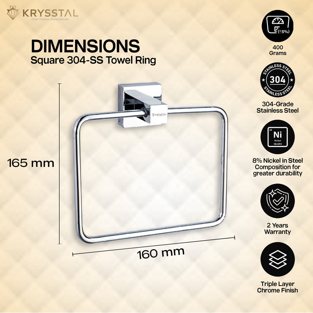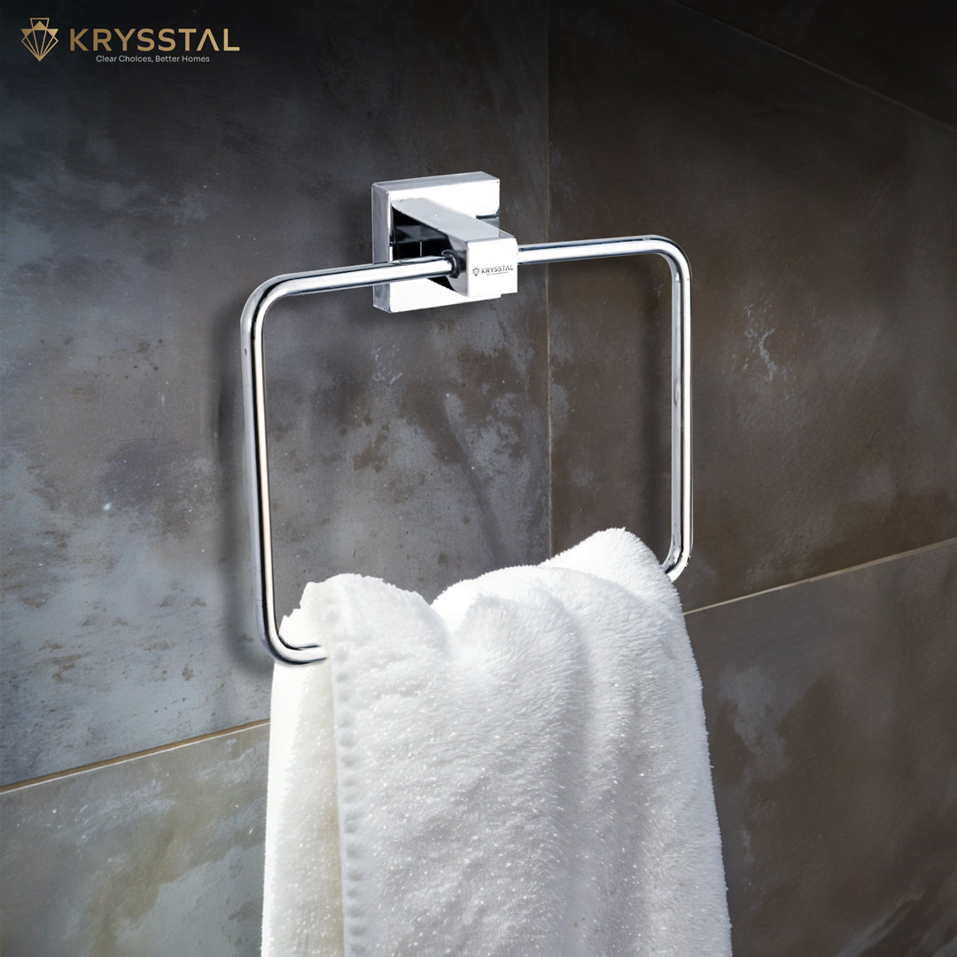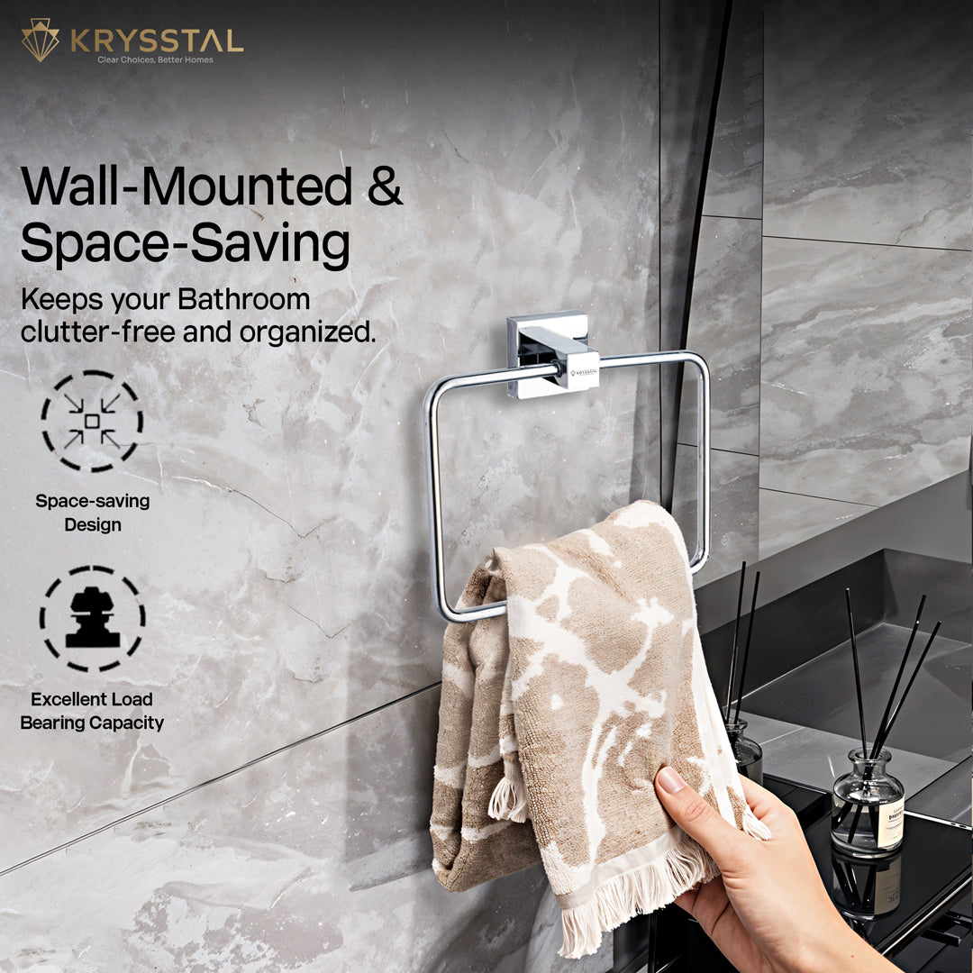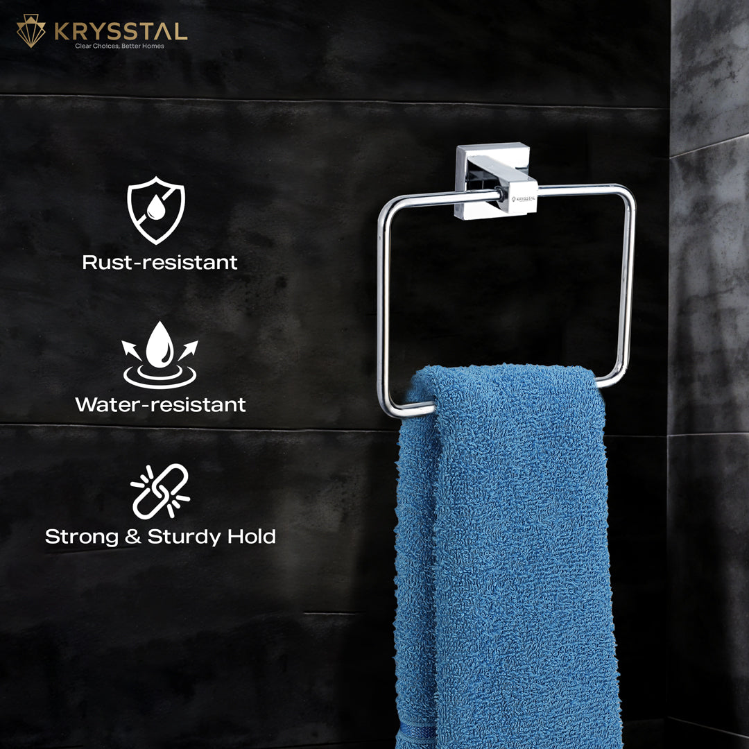 This square towel ring is made from strong 304-grade stainless steel with a shiny chrome finish that resists rust. Its wall-mounted design saves space and keeps your bathroom organized. Durable and sturdy, it holds heavy towels without bending or sagging.