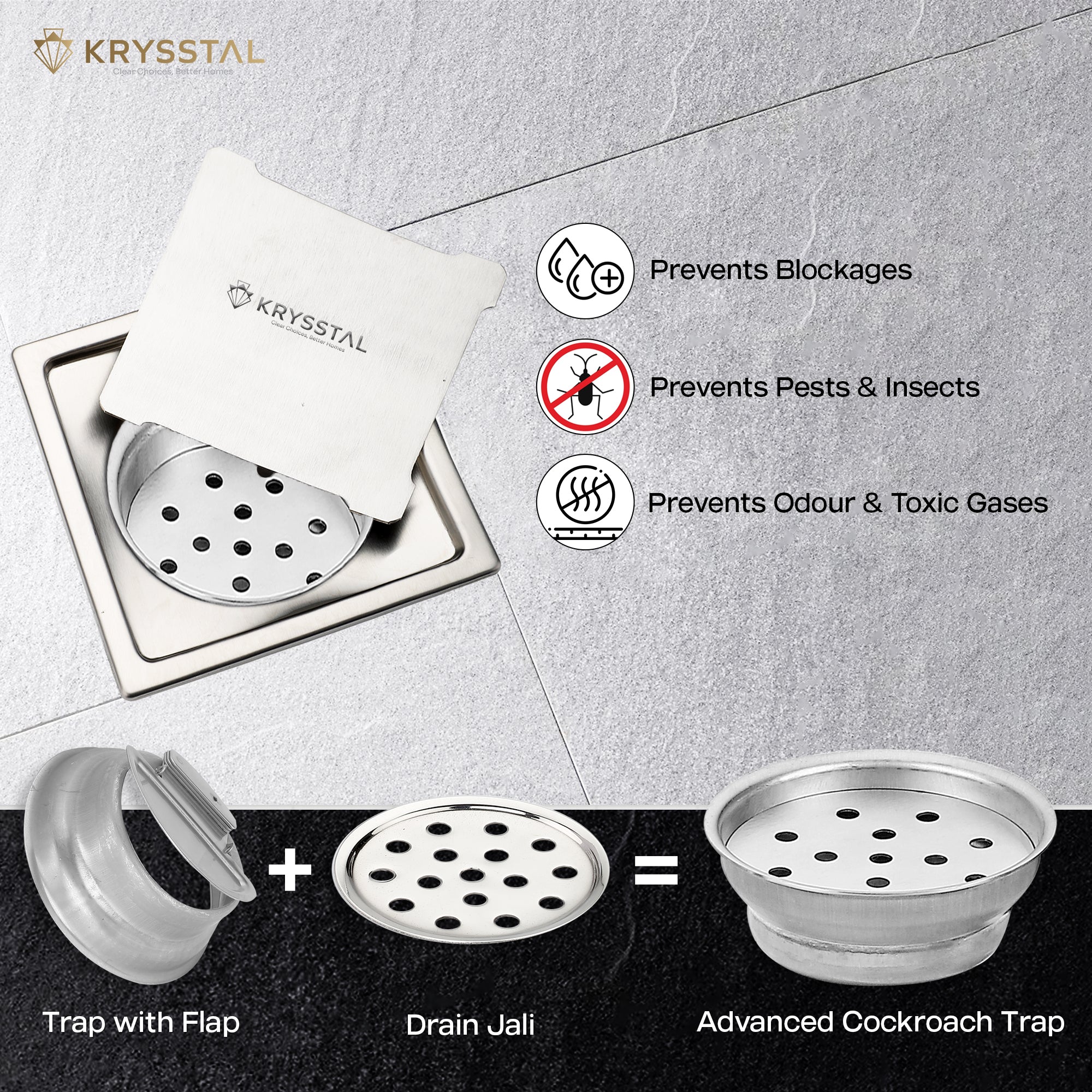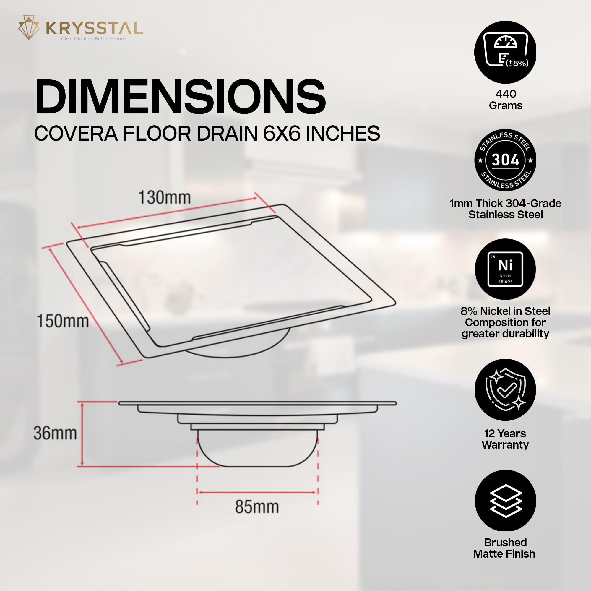 The Covera 304-SS Floor Drain offers durable stainless steel construction with an advanced cockroach trap that blocks pests and odors. Its self-closing flap ensures smooth water flow while preventing clogs by catching hair and debris. Designed for a secure fit without wobbling, it keeps floors dry and clean. The stylish, removable grating top adds a modern look and simplifies maintenance. Rust-resistant with proper care, this floor drain combines reliability and elegance for long-lasting use.