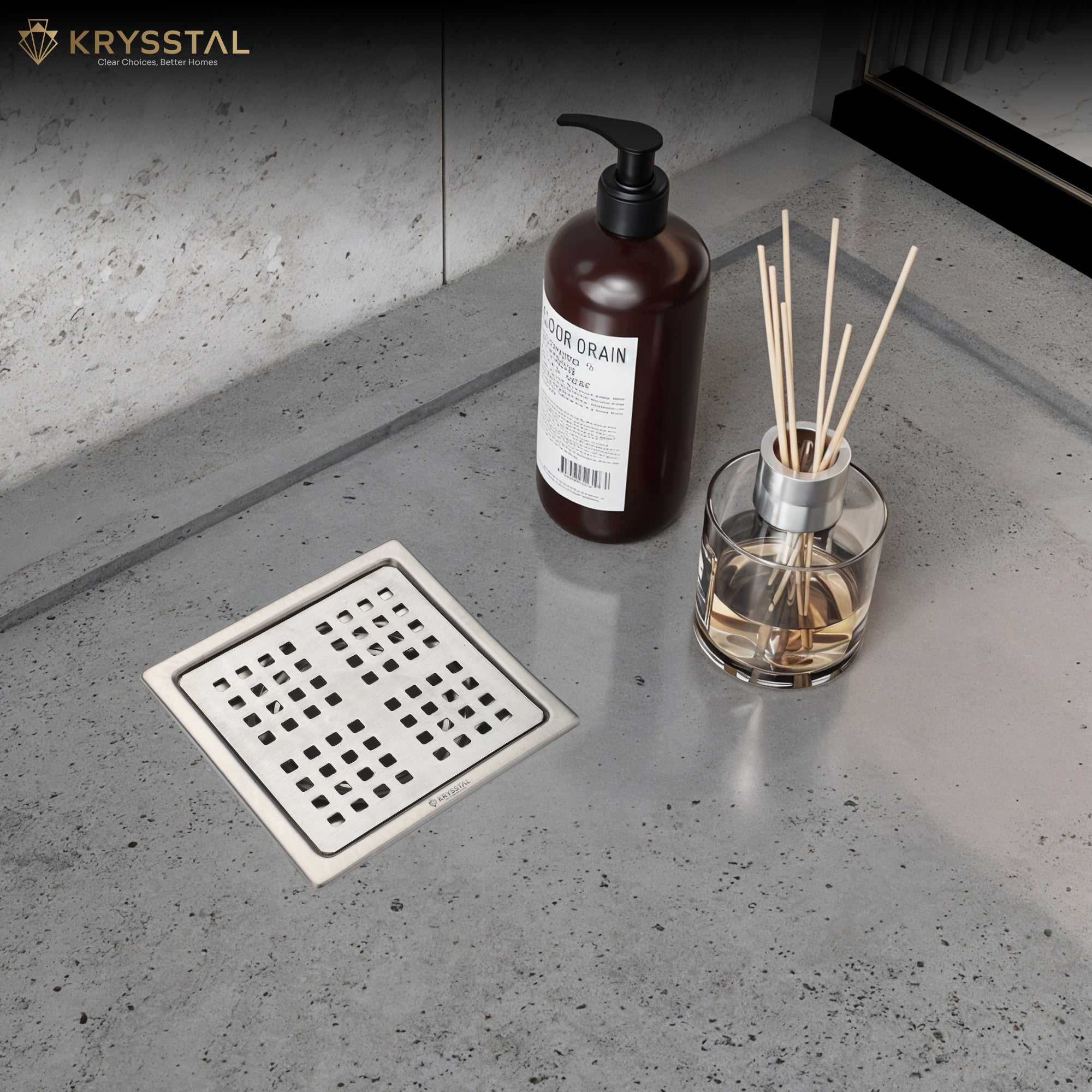 The Pixel 304-SS Floor Drain is crafted from durable stainless steel with a sleek matte finish, offering long-lasting rust resistance. Its advanced cockroach trap features a self-closing flap that blocks pests and odors while allowing water to drain smoothly. The curved edges ensure a secure, stable fit, and the removable, stylish top makes cleaning easy. Designed for fast drainage, it keeps floors dry and hygienic, combining practicality with a modern look.