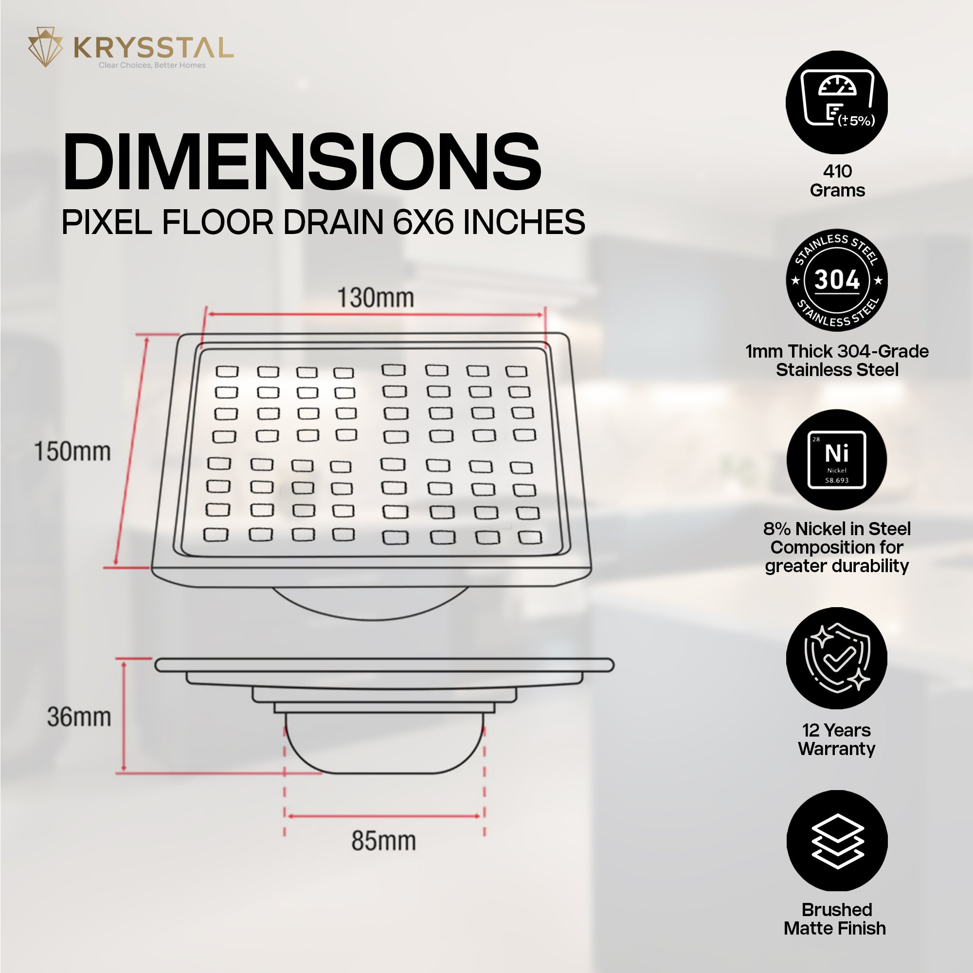 Pixel 304-SS Floor Drain (6" x 6") with Advanced Cockroach Trap