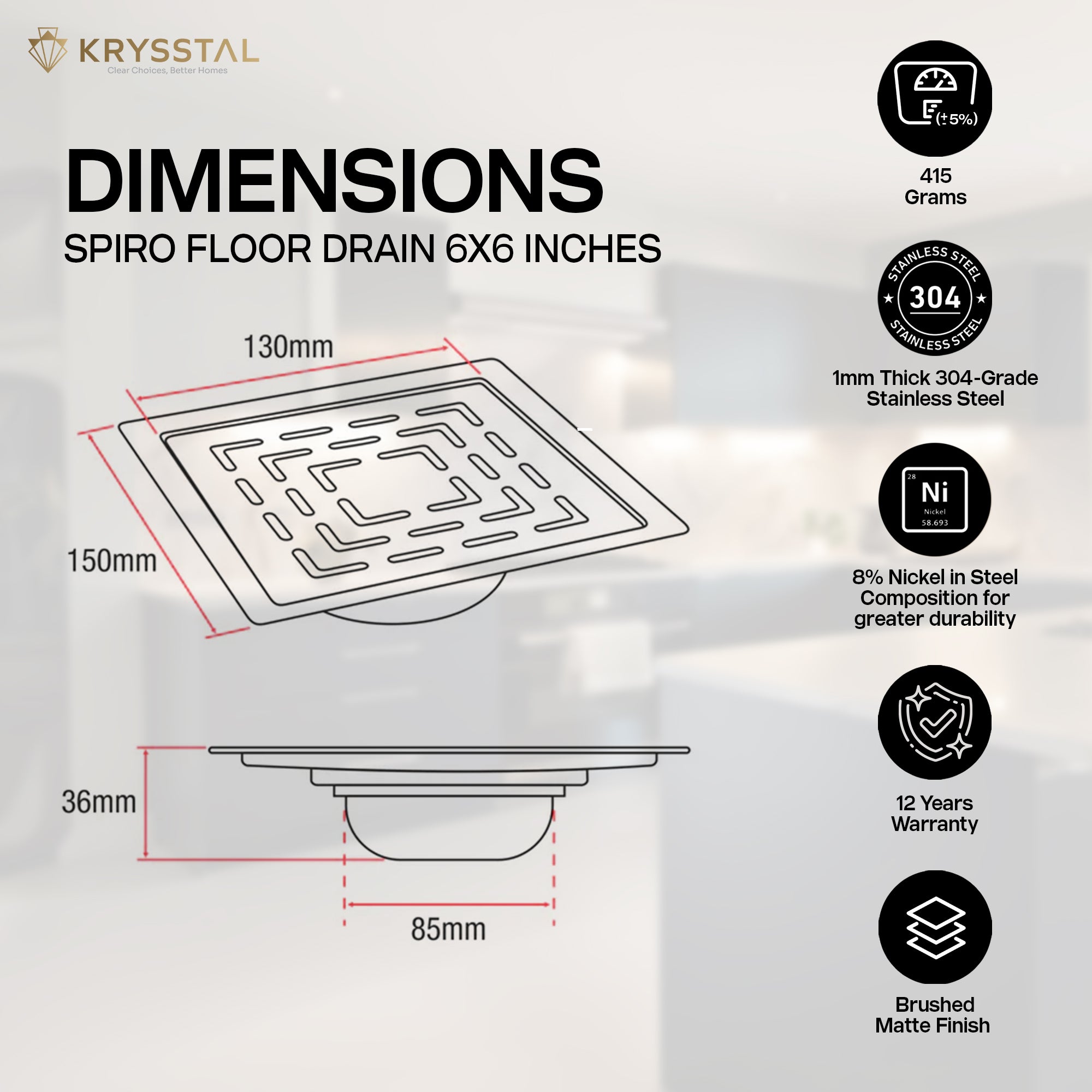 The Spiro 304-SS Floor Drain combines durability and smart design with its 1mm thick stainless steel build and advanced cockroach trap. Its self-closing flap blocks pests and odors while allowing smooth water flow. Curved edges keep it firmly in place, and the removable top ensures easy cleaning. This drain keeps your floor dry, hygienic, and pest-free with lasting rust resistance.