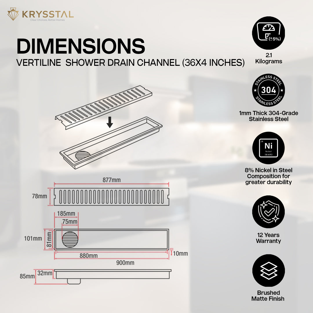 • AQUA-VAULT TECHNOLOGY: Linear Drain Channels are designed to handle heavy water flow, it ensures quick drainage, preventing water pooling and keeping your bathroom floor dry.