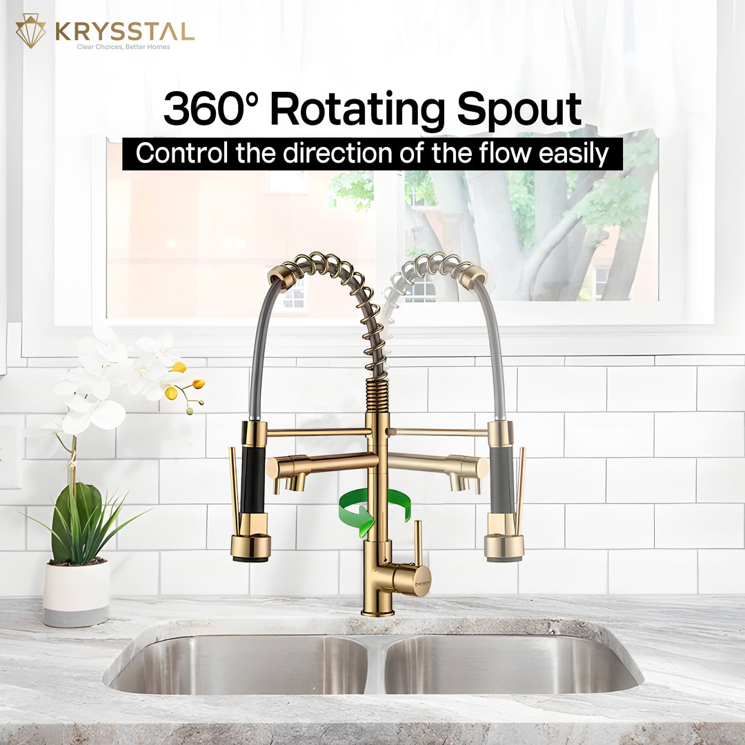 • Material & Finish: Manufactured using 304-grade Stainless Steel, this modular kitchen sink tap has a luxurious Gold PVD Coating, that adds an extra layer of protection and resistance against rust, corrosion, and oxidation, ensuring long-lasting durability.