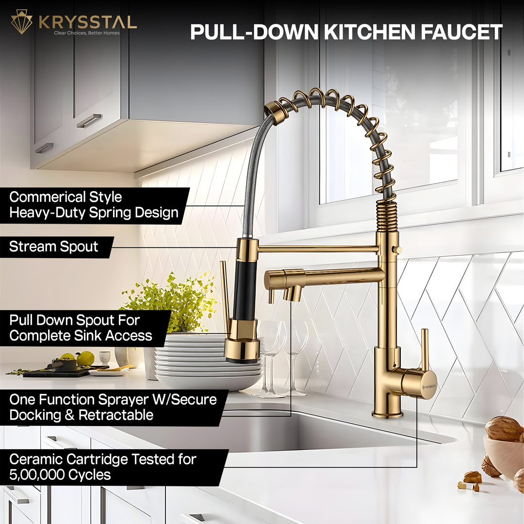 Q. Do KRYSSTAL kitchen mixer faucets come with a pull-out spray head?