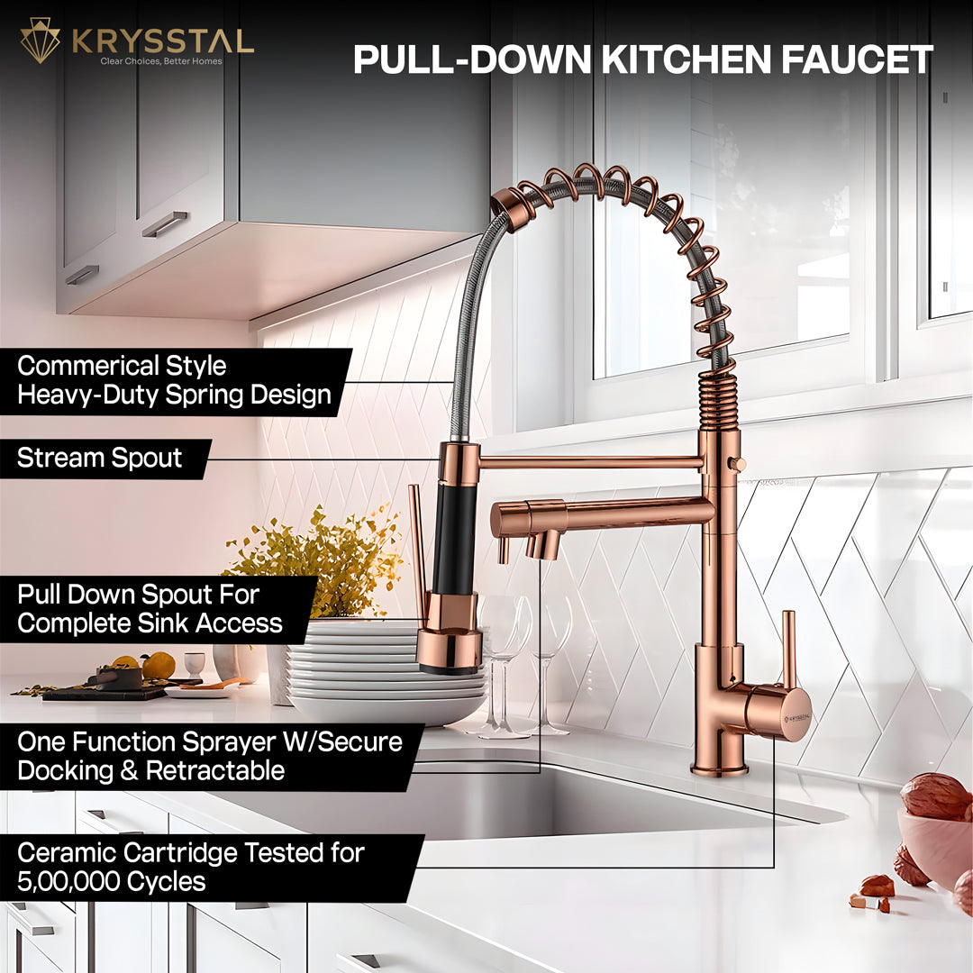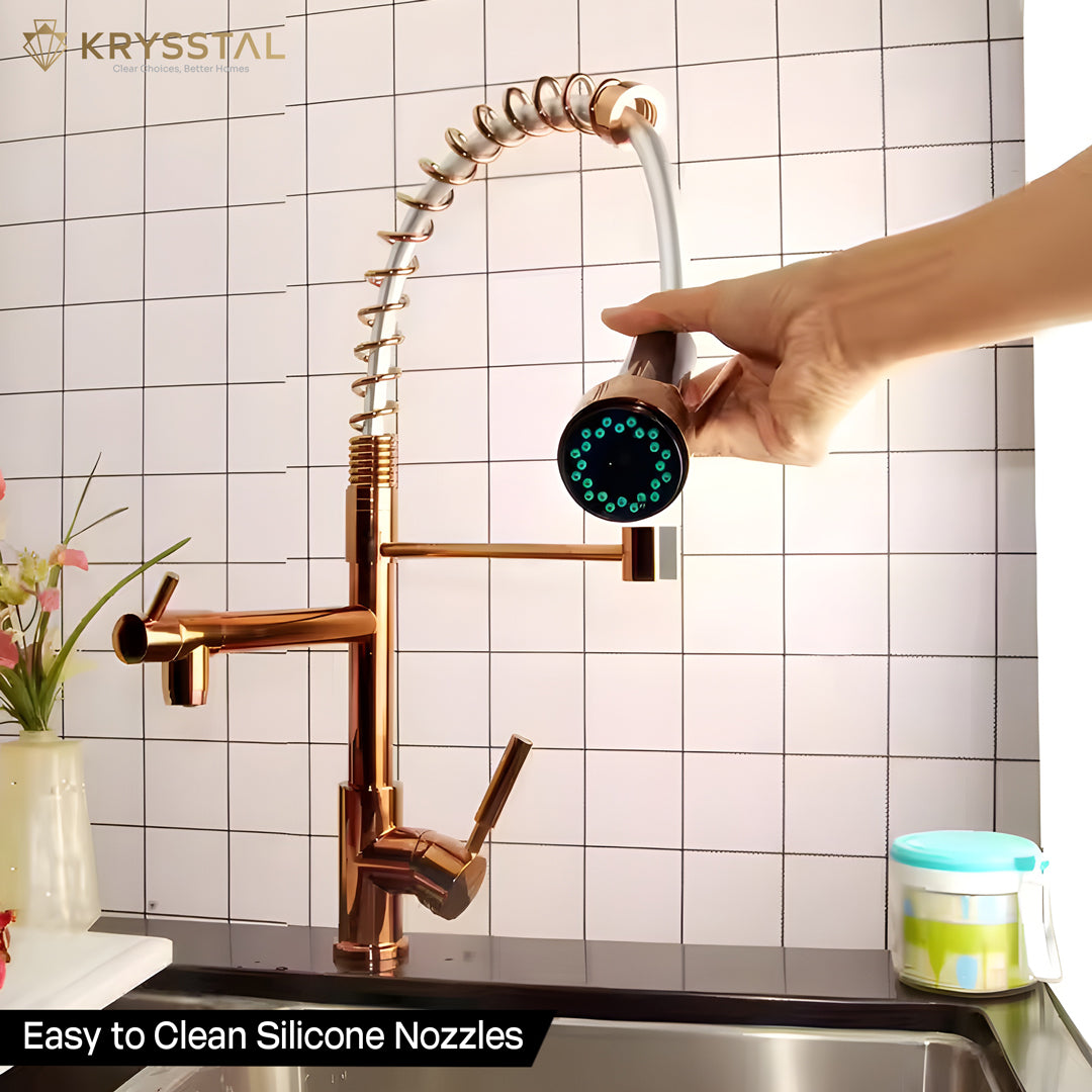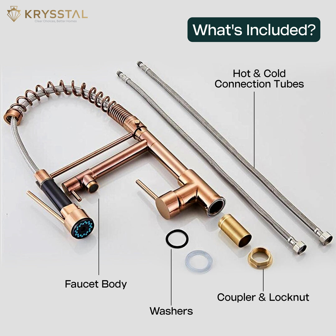 • Material & Finish: Manufactured using 304-grade Stainless Steel, this modular kitchen sink tap has a luxurious Rose Gold PVD Coating, that adds an extra layer of protection and resistance against rust, corrosion, and oxidation, ensuring long-lasting durability.