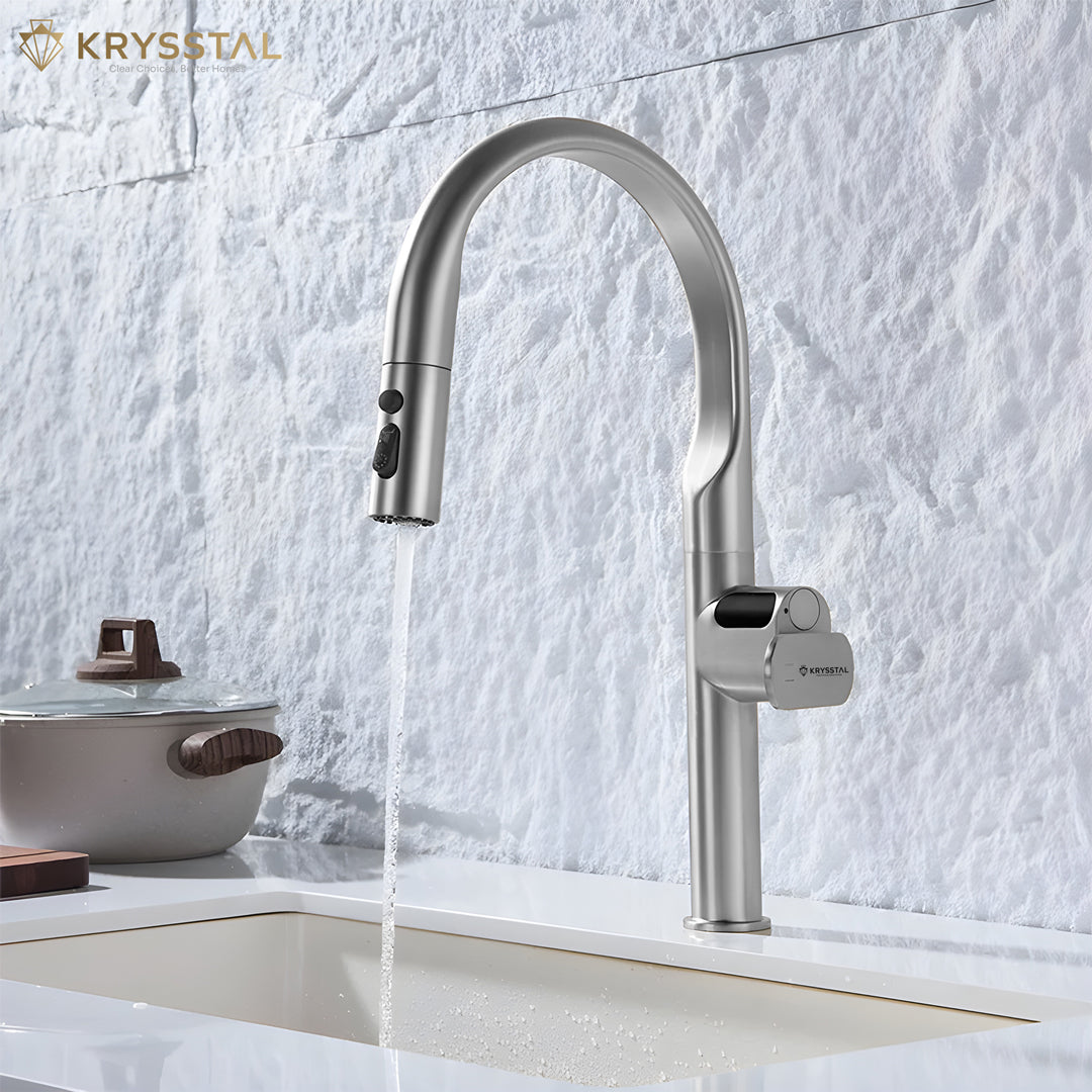 A. KRYSSTAL kitchen sink mixer faucets are made using 304-grade stainless steel and brass ingots, ensuring exceptional durability, rust resistance, and a sleek, polished appearance.