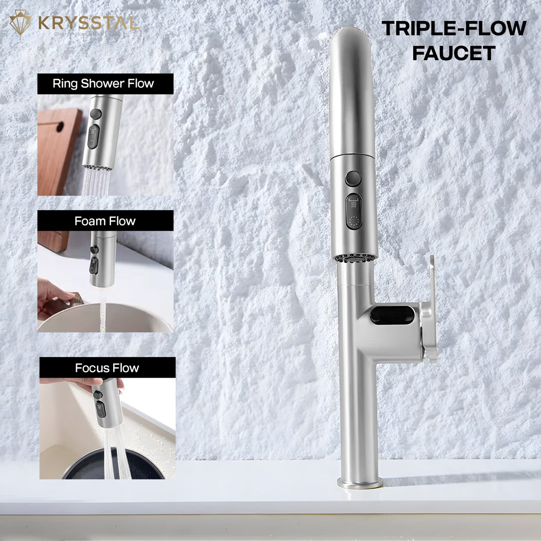 A. Yes, most KRYSSTAL pull-out faucets feature multiple spray modes, such as a standard stream and a spray function, to cater to different kitchen tasks.