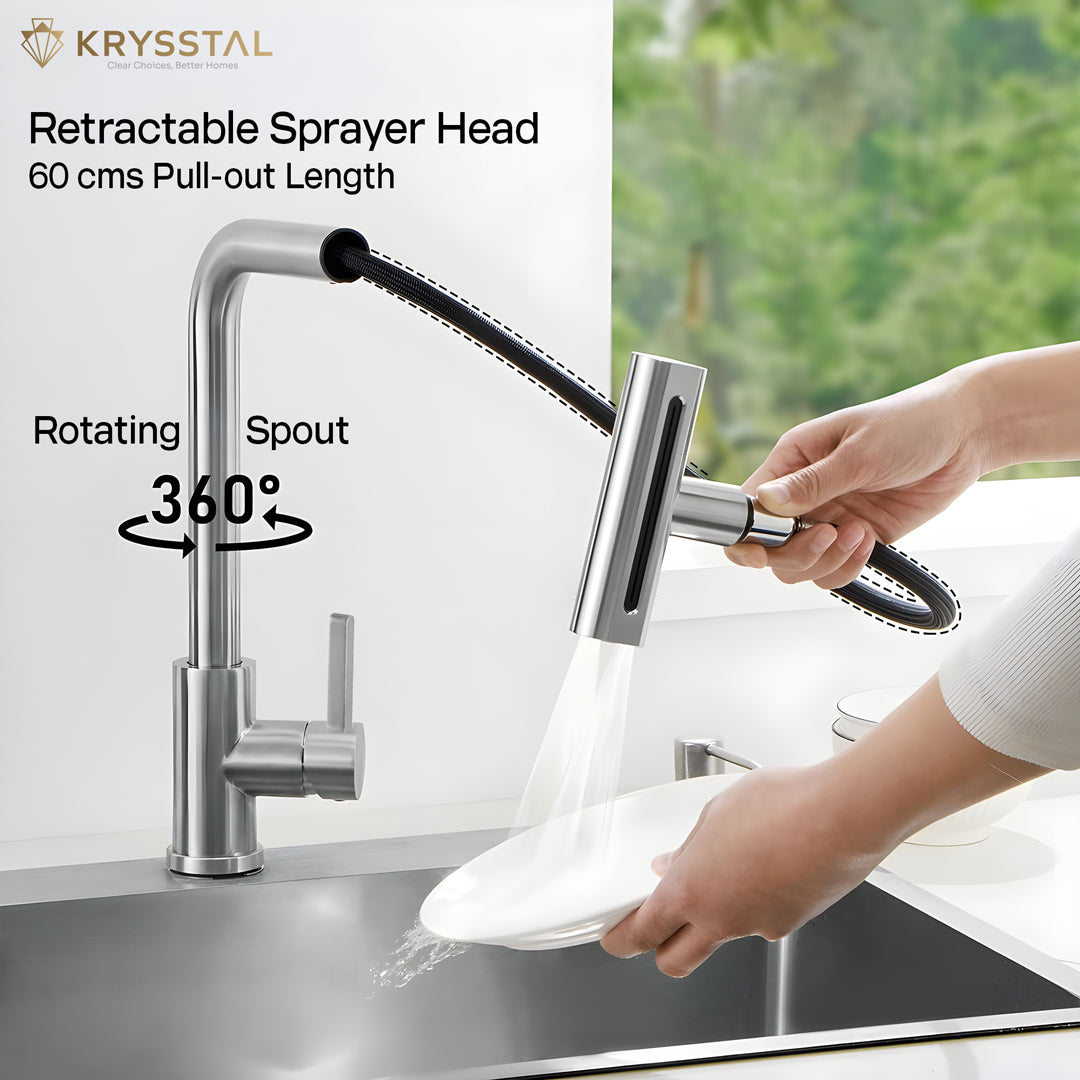 Yes, many KRYSSTAL mixer faucets include a pull-out spray head feature, which is ideal for rinsing vegetables, cleaning large utensils, and reaching all corners of the sink.