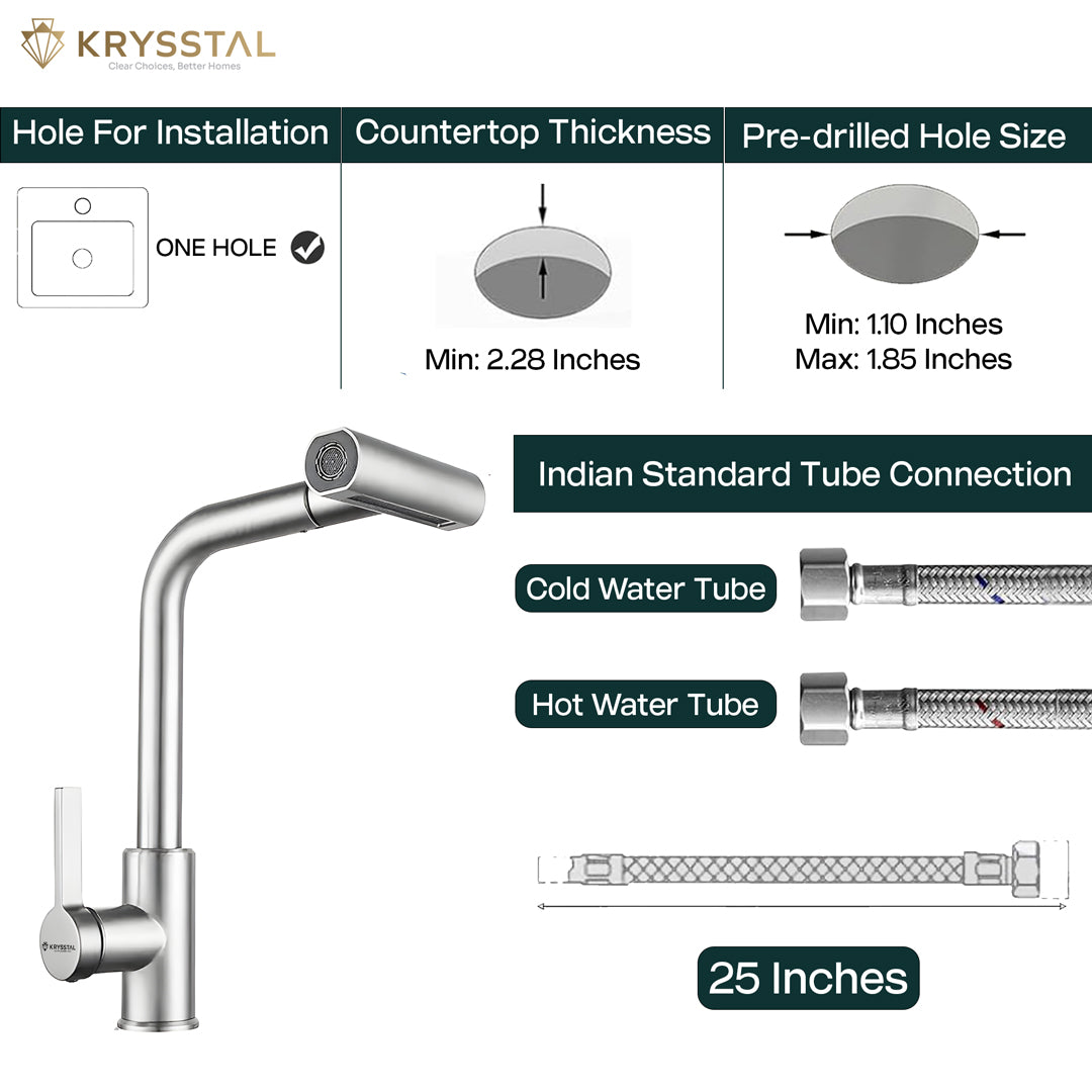 • Material & Finish: Manufactured using 304-grade Stainless Steel, this modular kitchen sink tap has a stunning Brushed Nickle Finish, that adds an extra layer of protection and resistance against rust, corrosion, and oxidation, ensuring long-lasting durability.