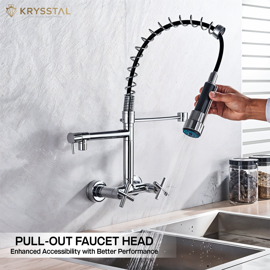 Yes, many KRYSSTAL mixer faucets include a pull-out spray head feature, which is ideal for rinsing vegetables, cleaning large utensils, and reaching all corners of the sink.