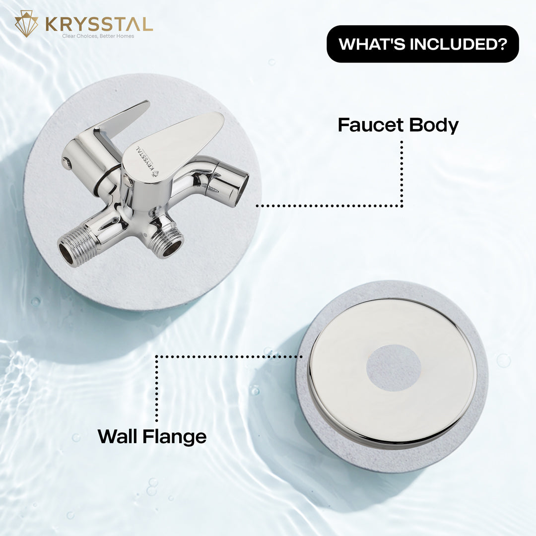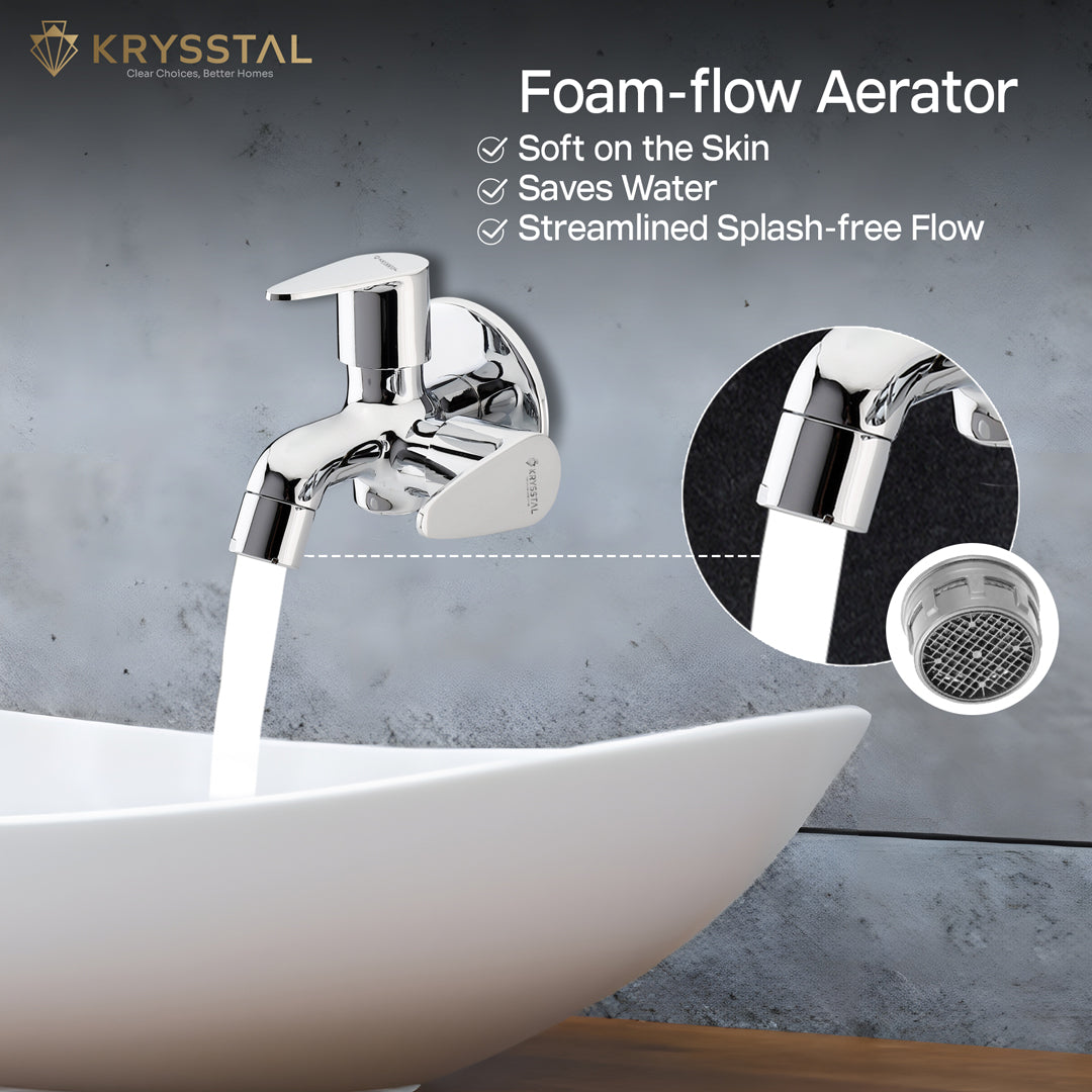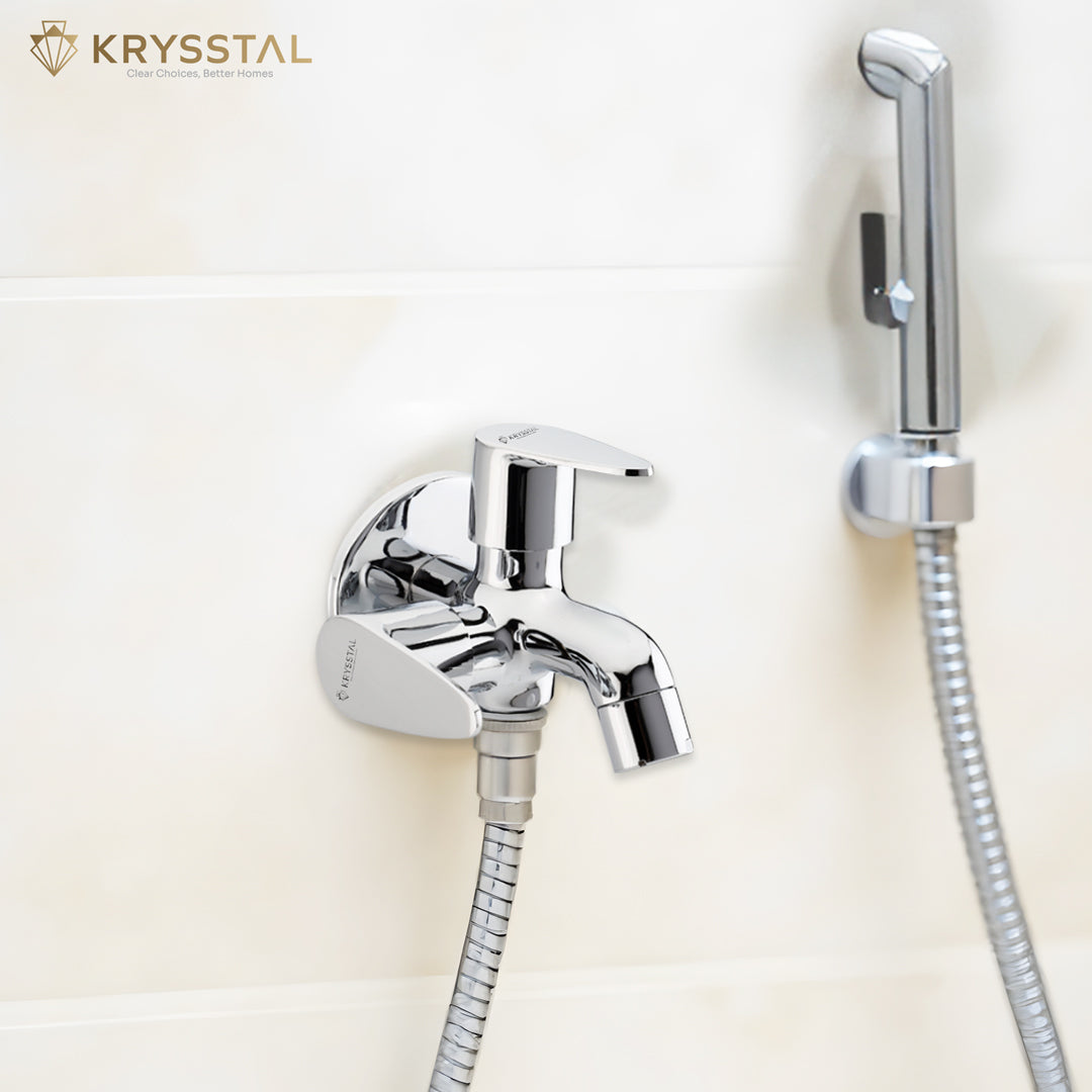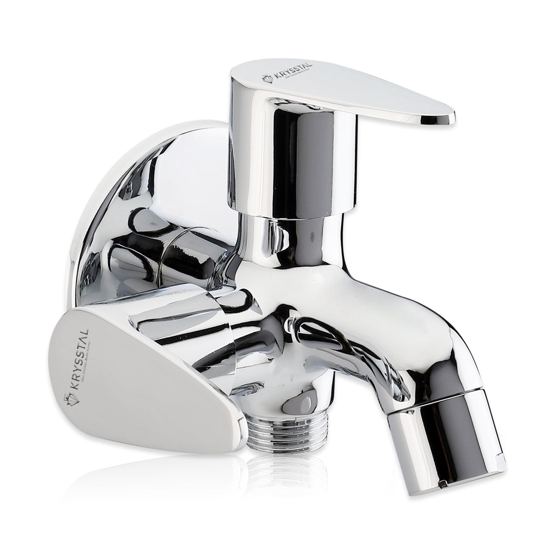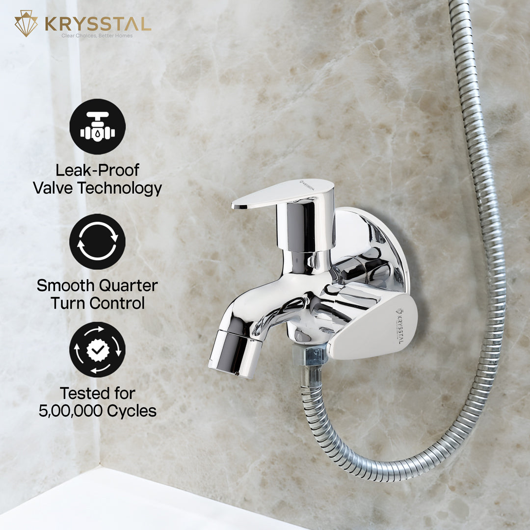 The Eeco Two Way Bib Tap features dual handles for easy control of two water outlets, perfect for connecting a bidet, geyser, or washing machine alongside a regular tap. Made from solid brass with a chrome finish, it resists rust and corrosion while ensuring durability. Its foam aerator saves water by reducing splashes and noise. Designed for leak-free use and smooth operation, these taps are for bathrooms, kitchens, and outdoor areas. Easy to clean and maintain, it offers reliable, versatile water flow wherever you need it.