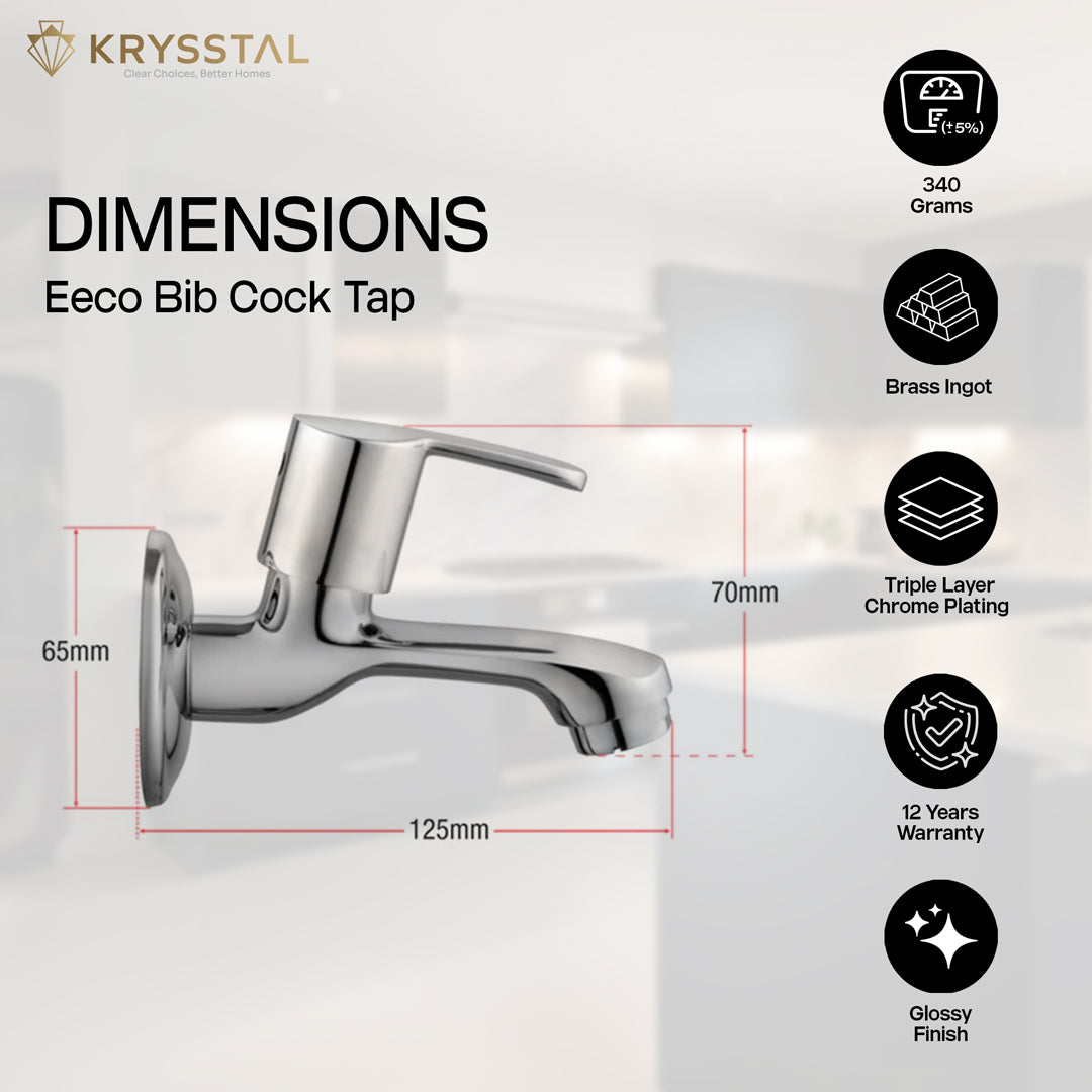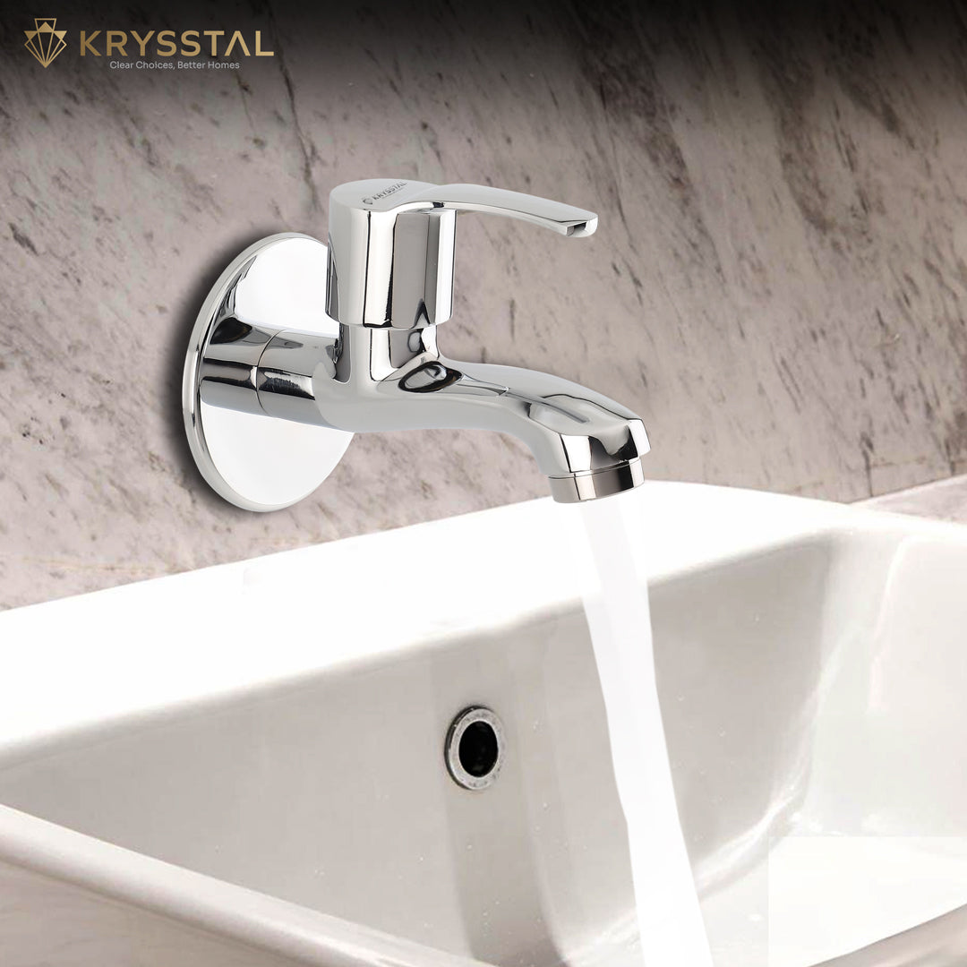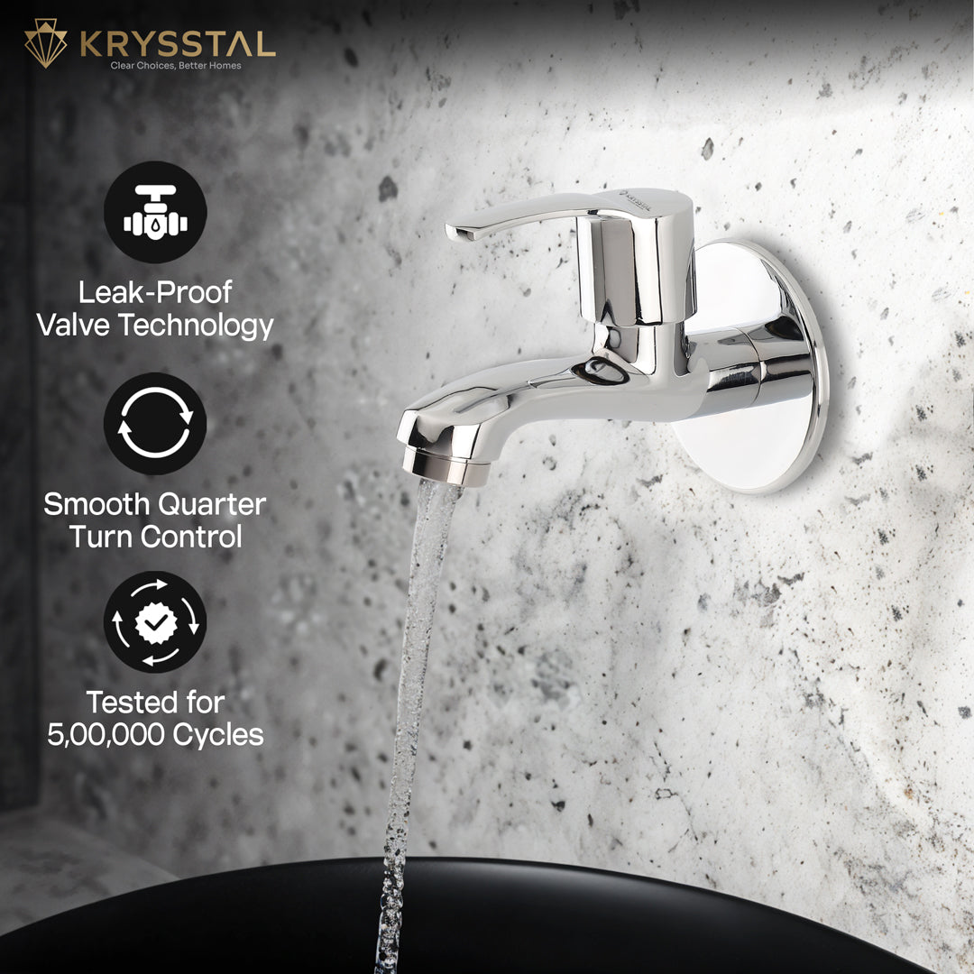 High-quality bib taps are usually made from brass, stainless steel, or ABS with chrome plating for durability, corrosion resistance, and a long-lasting shine. Although Chrome Plated Brass Bib taps are the ideal choice for Indian Climate.