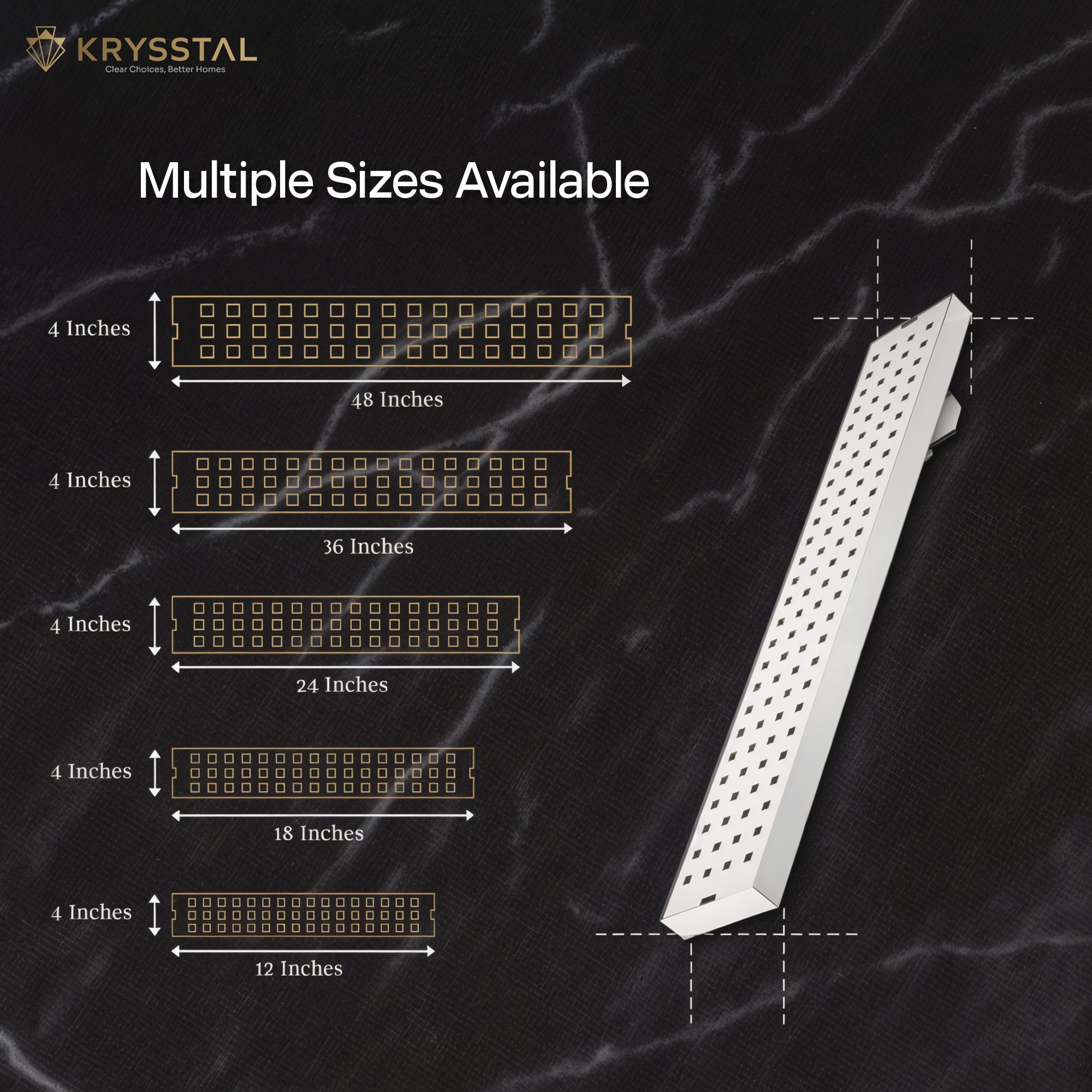 With a larger surface area and multiple precision-cut designer holes, these drain channels pull in more water at once — perfect for walk-in showers and high-flow zones.