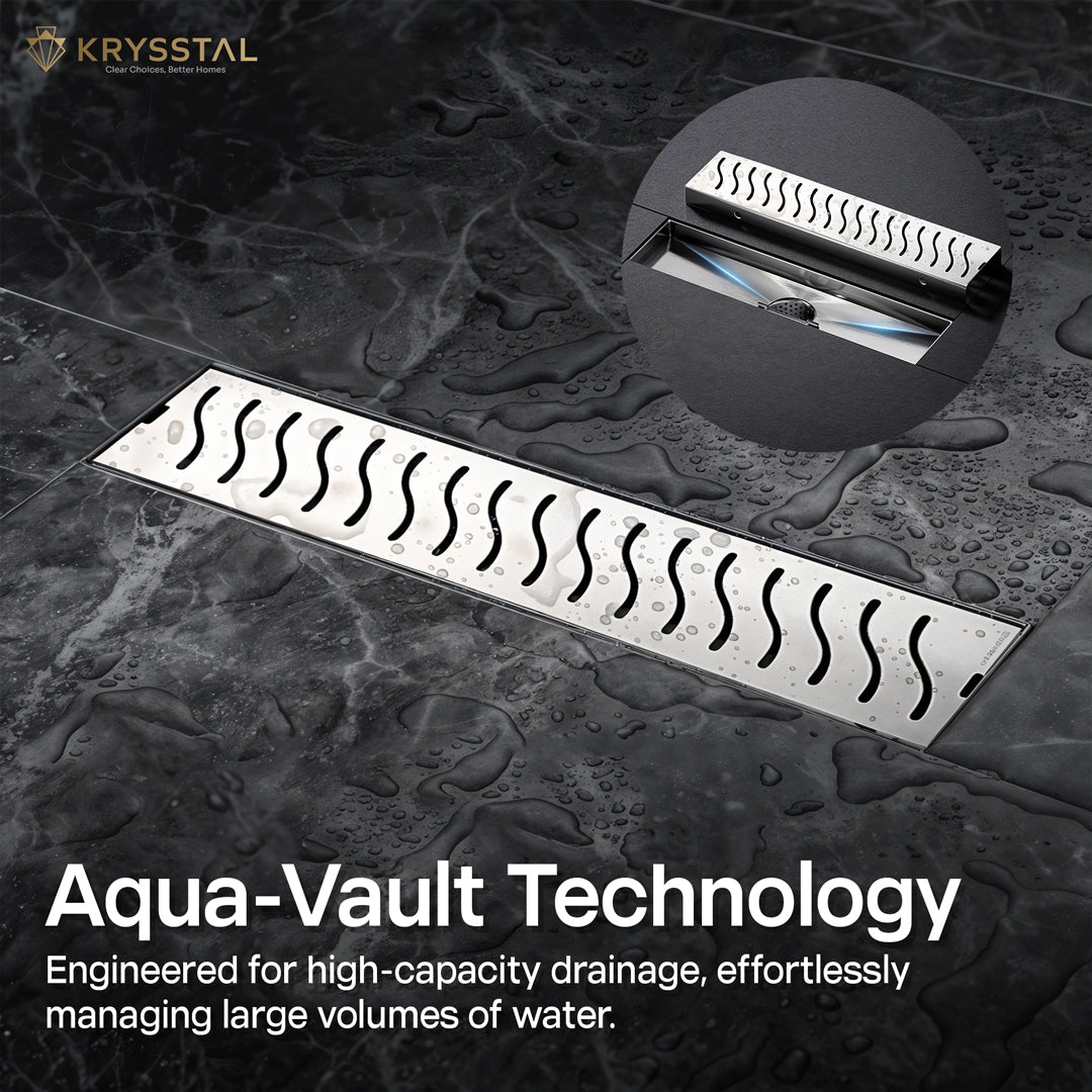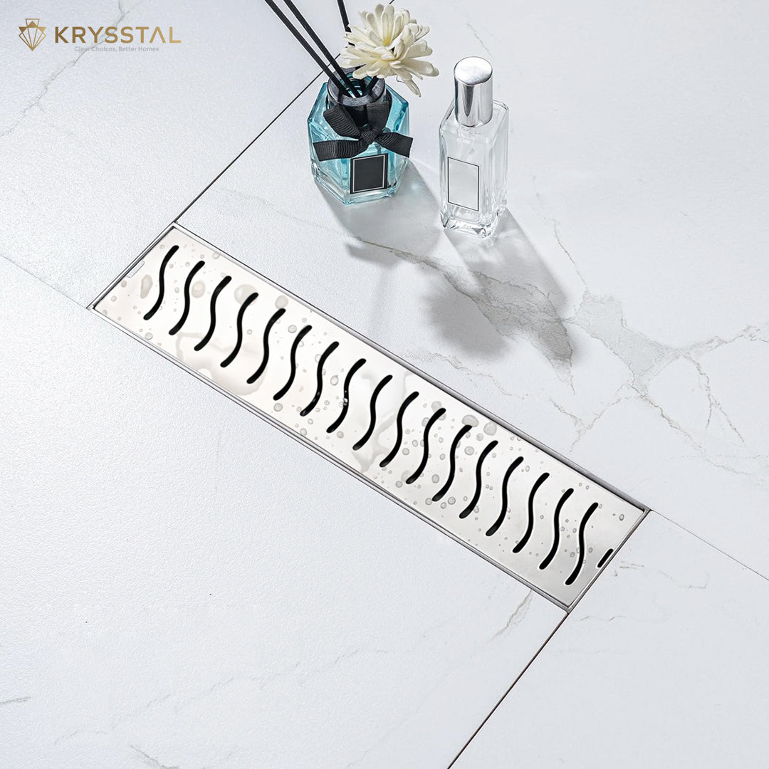 The Ripple 304-SS Shower Drain Channel is made from strong 304-grade stainless steel with a rust-resistant matte finish. It features a built-in cockroach trap that catches hair and debris to prevent pests, odors, and blockages. Designed for fast water flow, it keeps your bathroom floor dry by draining water quickly. Its sleek design fits seamlessly into your floor for a clean, modern look. Easy to maintain with regular cleaning, it’s a practical and stylish bathroom upgrade.