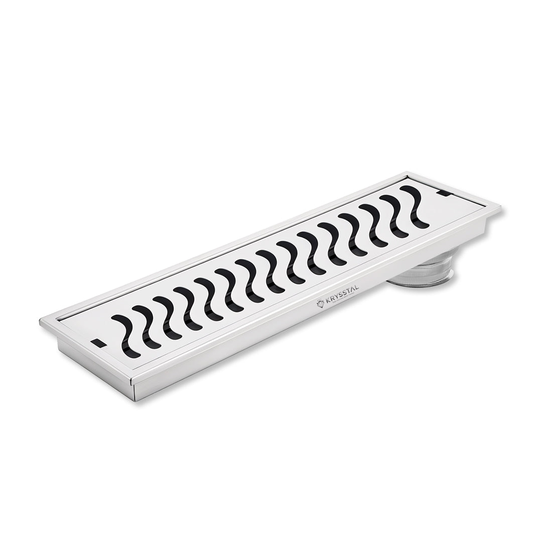 The Ripple 304-SS Shower Drain Channel is made from durable 304-grade stainless steel with a rust-resistant matte finish. Its cockroach trap catches hair and debris to prevent pests, odors, and clogs, keeping drains clear. Designed for fast water flow, it stops water pooling and keeps your bathroom floor dry. The sleek design blends smoothly with your floor for a clean, modern look, making it a practical and stylish bathroom upgrade.