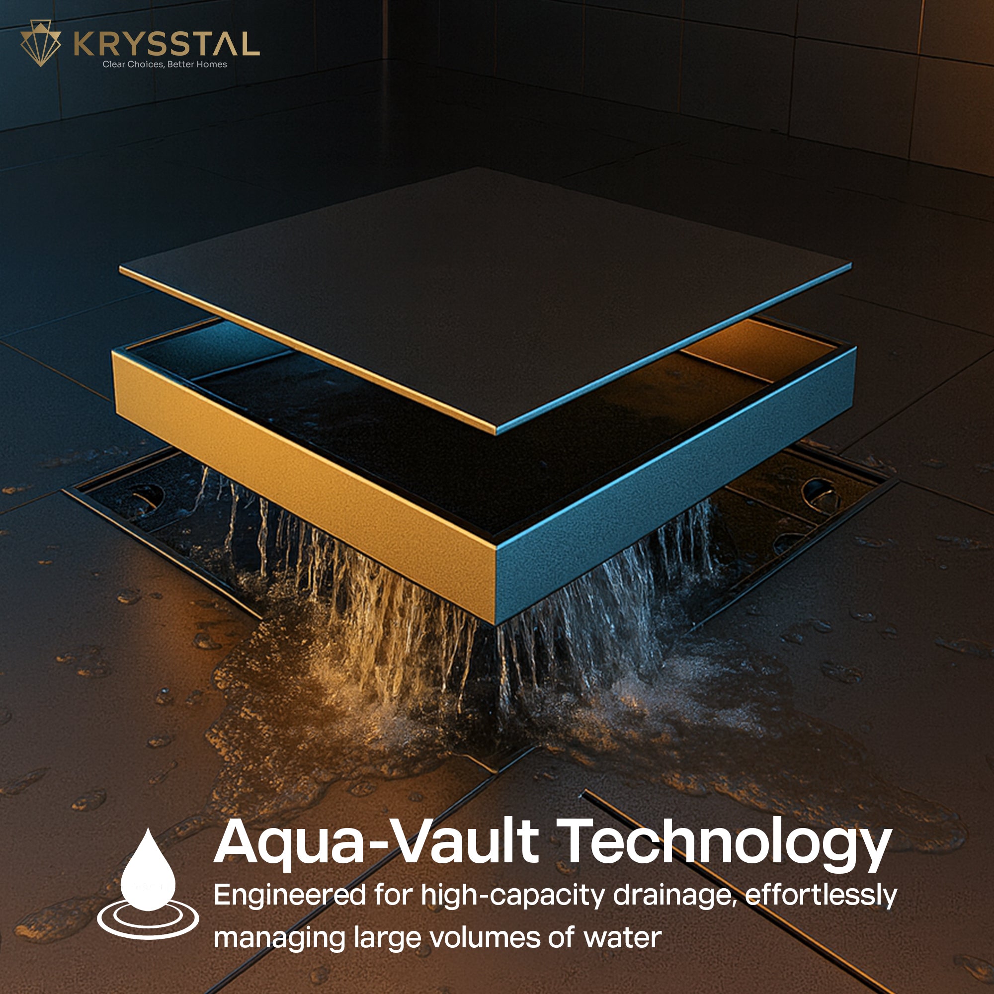 AQUA-VAULT TECHNOLOGY: Square Floor Drains are designed to handle heavy water flow, it ensures quick drainage, preventing water pooling and keeping your bathroom floor dry.