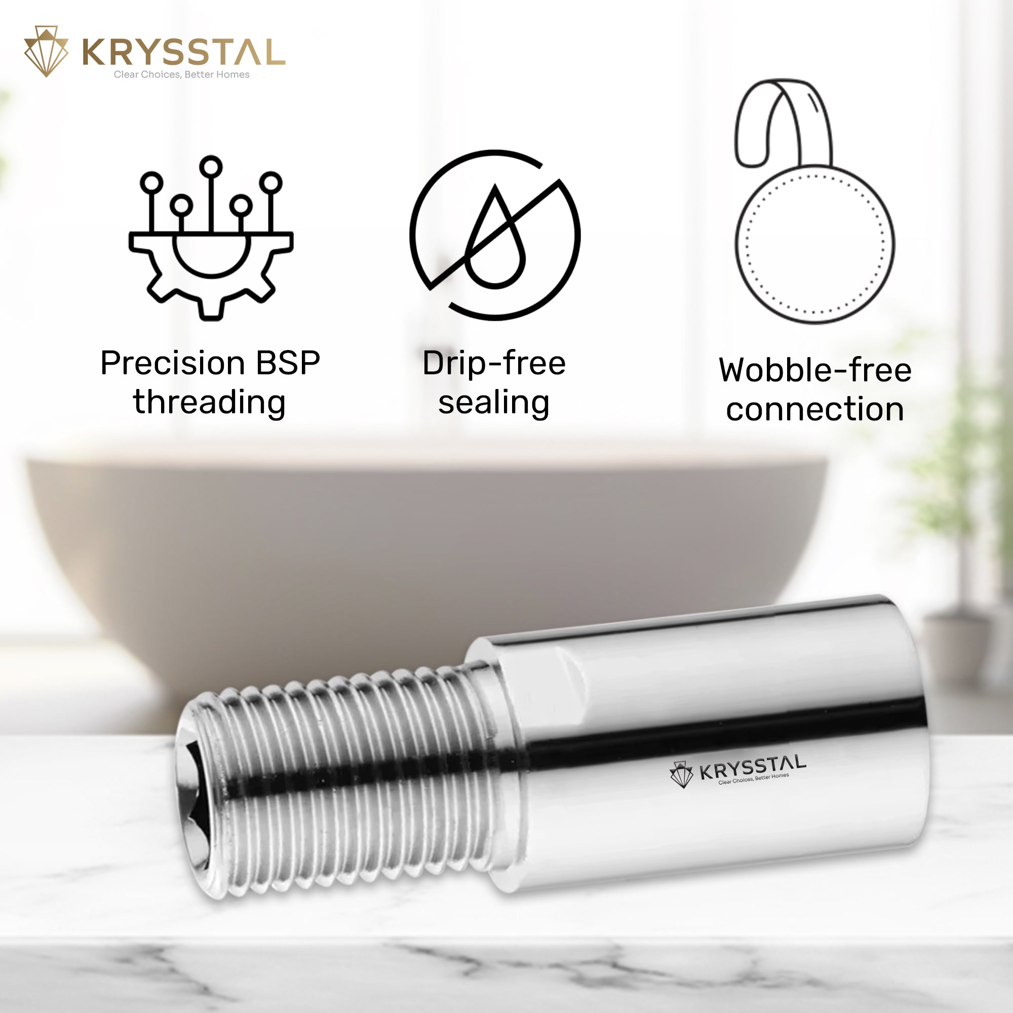 A chrome plated brass extension nipple (solid brass core, triple-layer chrome) is rust-free, limescale-resistant, and matches premium bathroom plumbing accessories.