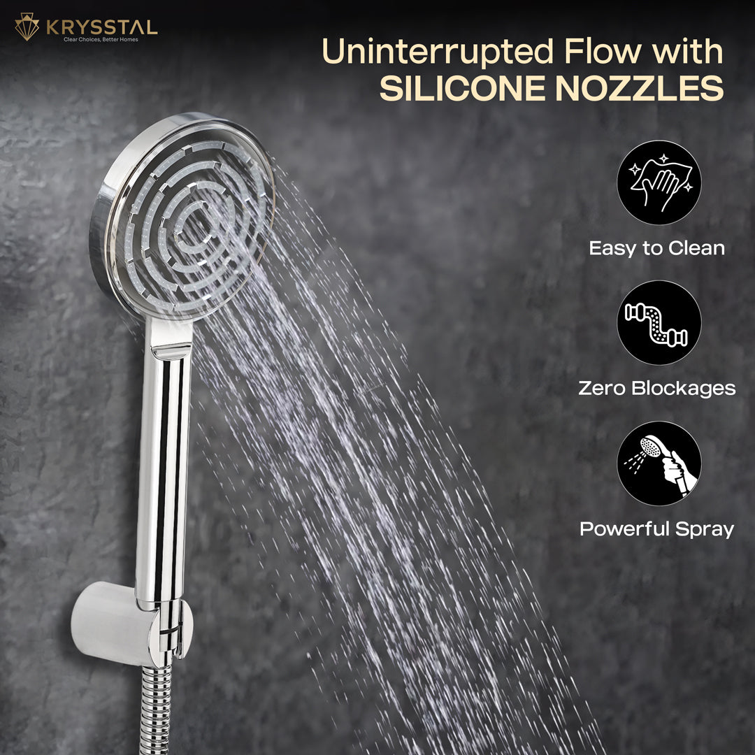 The hand shower head comes with self-cleaning silicone nozzles that resist limescale and clogging, ensuring smooth, uninterrupted water flow with zero maintenance hassles.