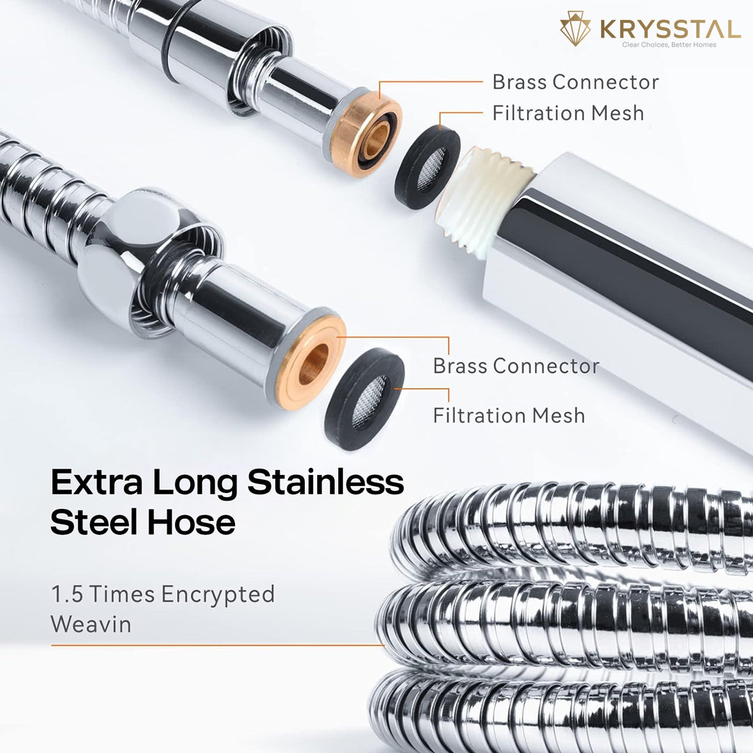 Q. What type of pipe or hose is included with KRYSSTAL hand showers?