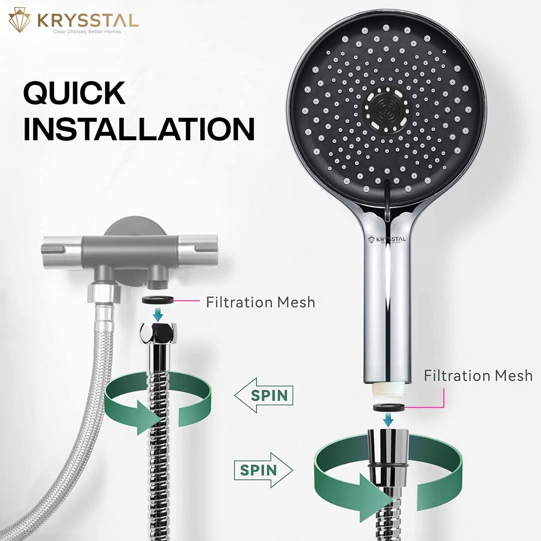 Wipe regularly with a soft cloth. For lime scale build-up, soak the nozzles in diluted vinegar. KRYSSTAL hand showers are designed to be low-maintenance.
