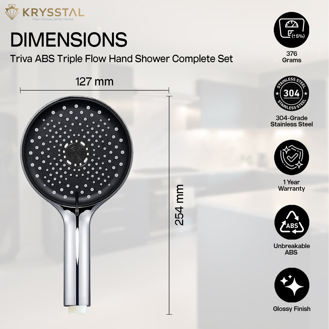 Triva ABS Triple Flow Hand Shower with 304-SS Flexible Shower Tube (1m) & Wall Hook