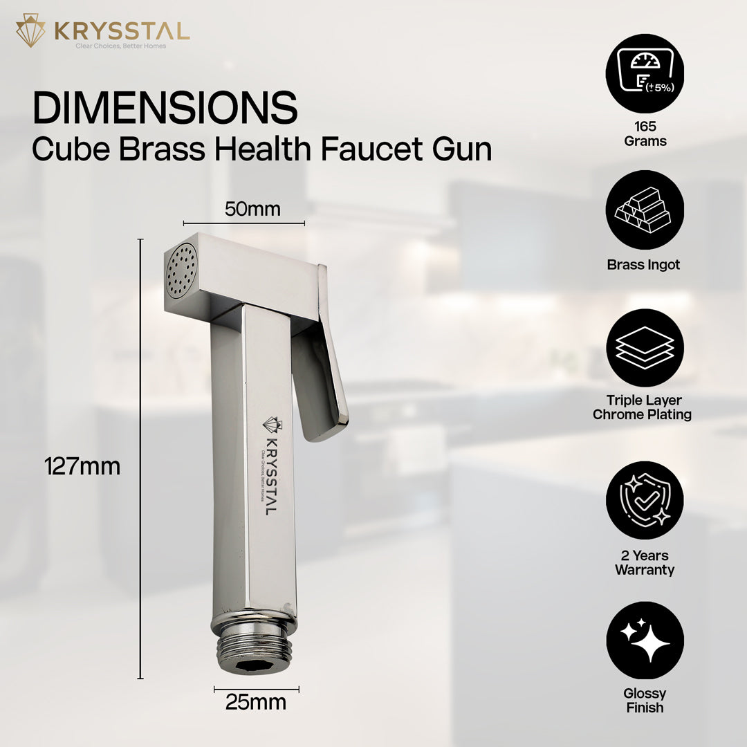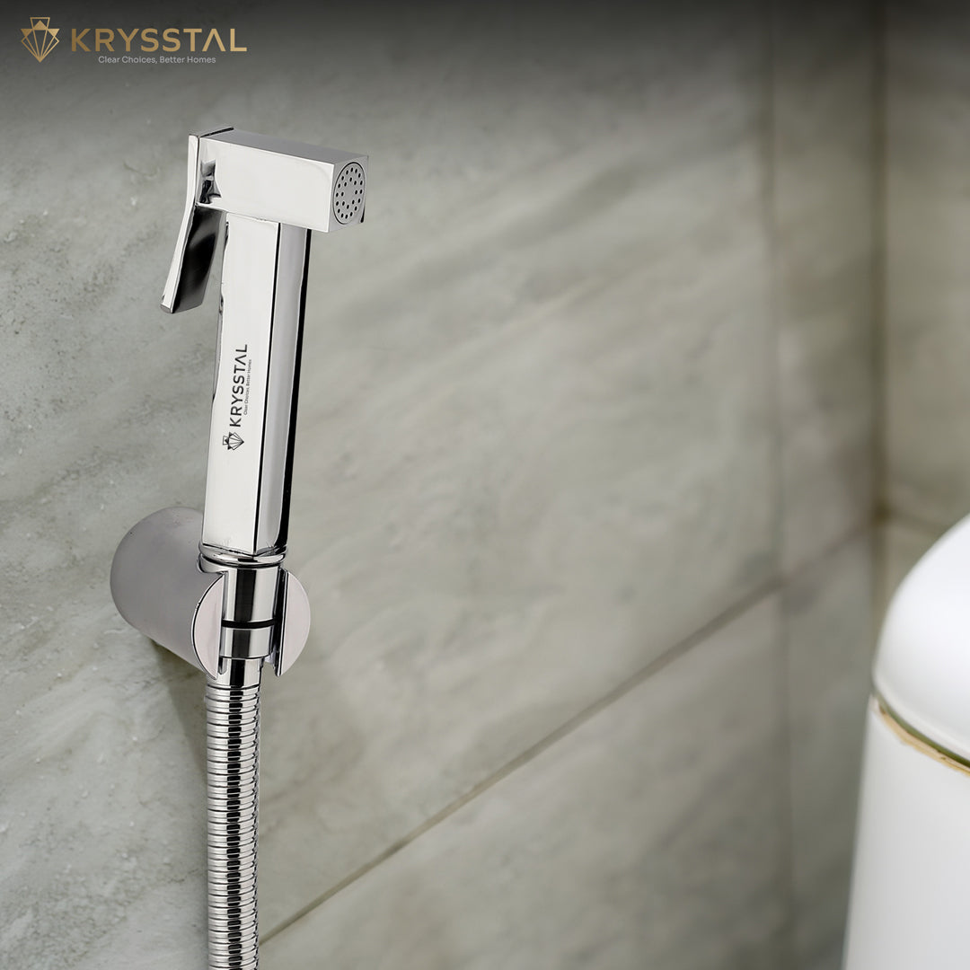 Brass health faucets are preferred for their sturdiness and resistance to rust and tarnish, making them ideal for long-term use in humid bathroom conditions. KRYSSTAL’s brass faucets combine functionality with a premium design, enhancing the overall look of your bathroom.