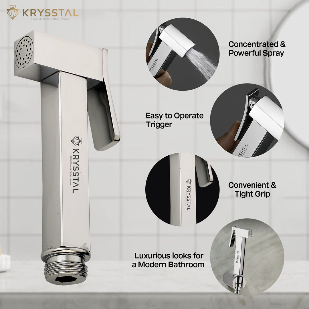 • Material & Finish: Crafted from premium-grade brass, this health faucet for bathroom comes with Glossy Chrome Finish, resistant to rusting and corrosion.