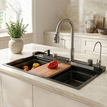 • Double Waterfall Feature: Sink includes two waterfall outlets—a large sprinkler waterfall for rinsing and a small cascading waterfall for gentle washing.