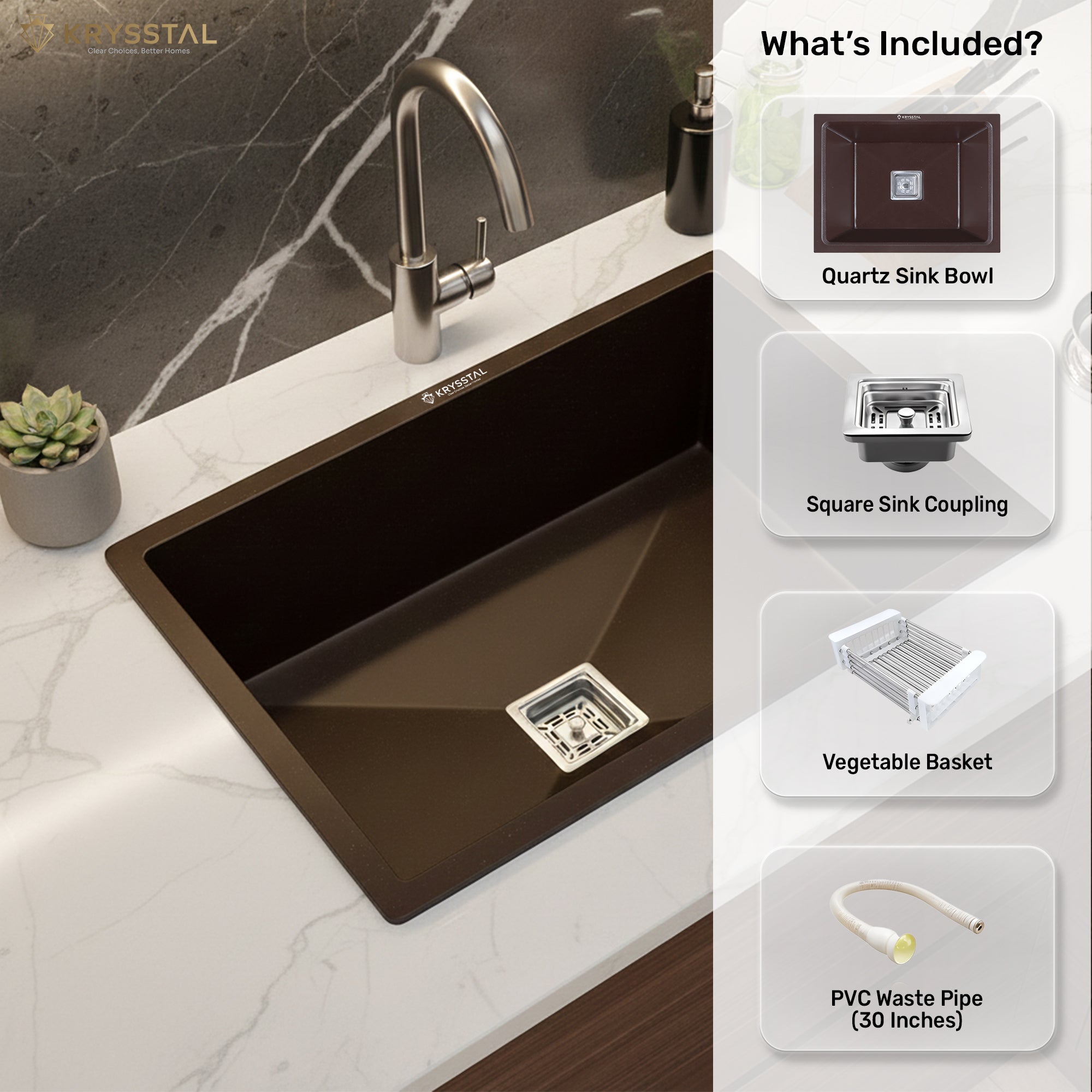Quartz Brown (24 x 18 x 10 Inches) Single Bowl Kitchen Sink