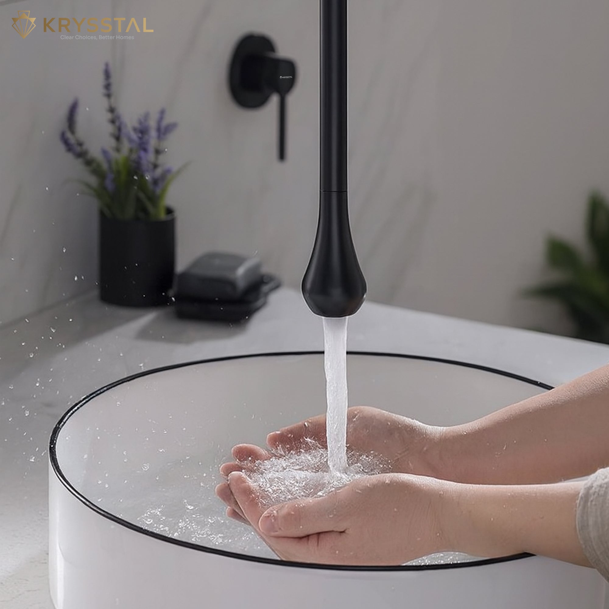 Absolutely. With its unique ceiling-mounted drop design, this Krysstal faucet adds a luxury 5-star bathroom aesthetic, making it ideal for premium homes, designer bathrooms, and luxury hotels.