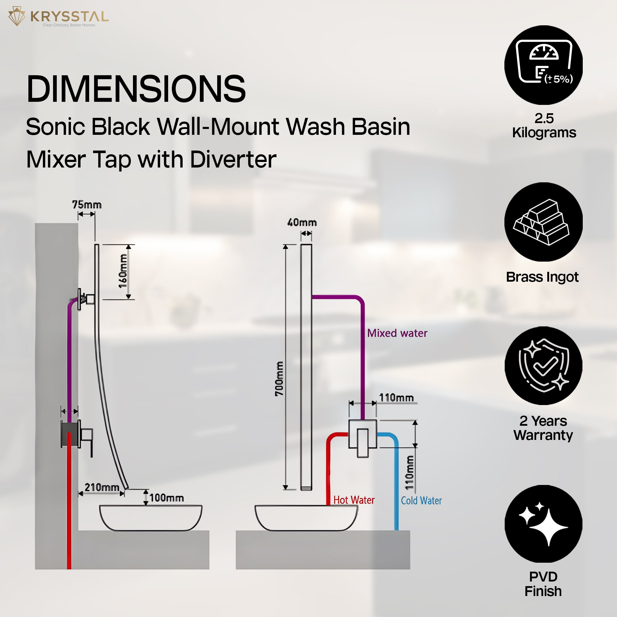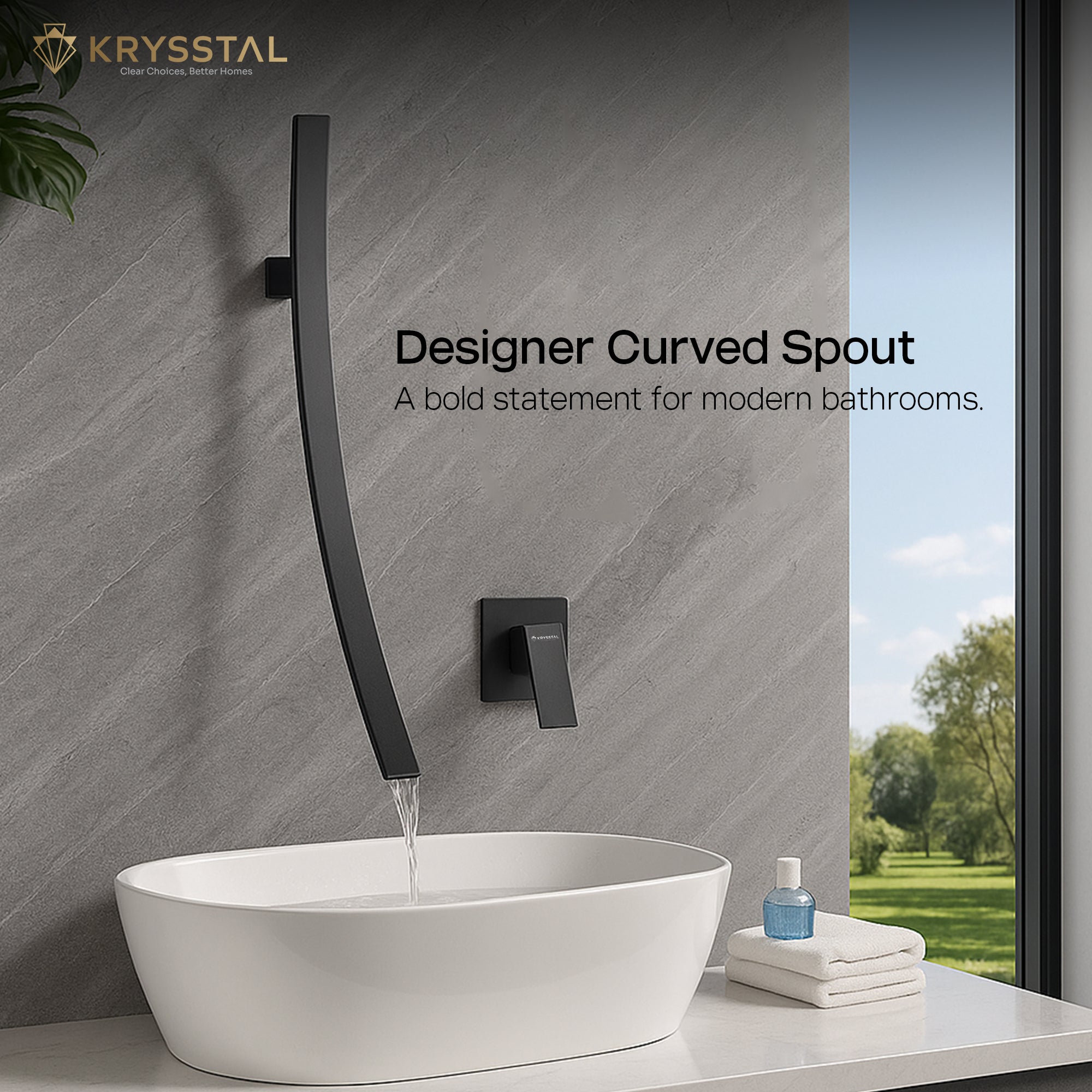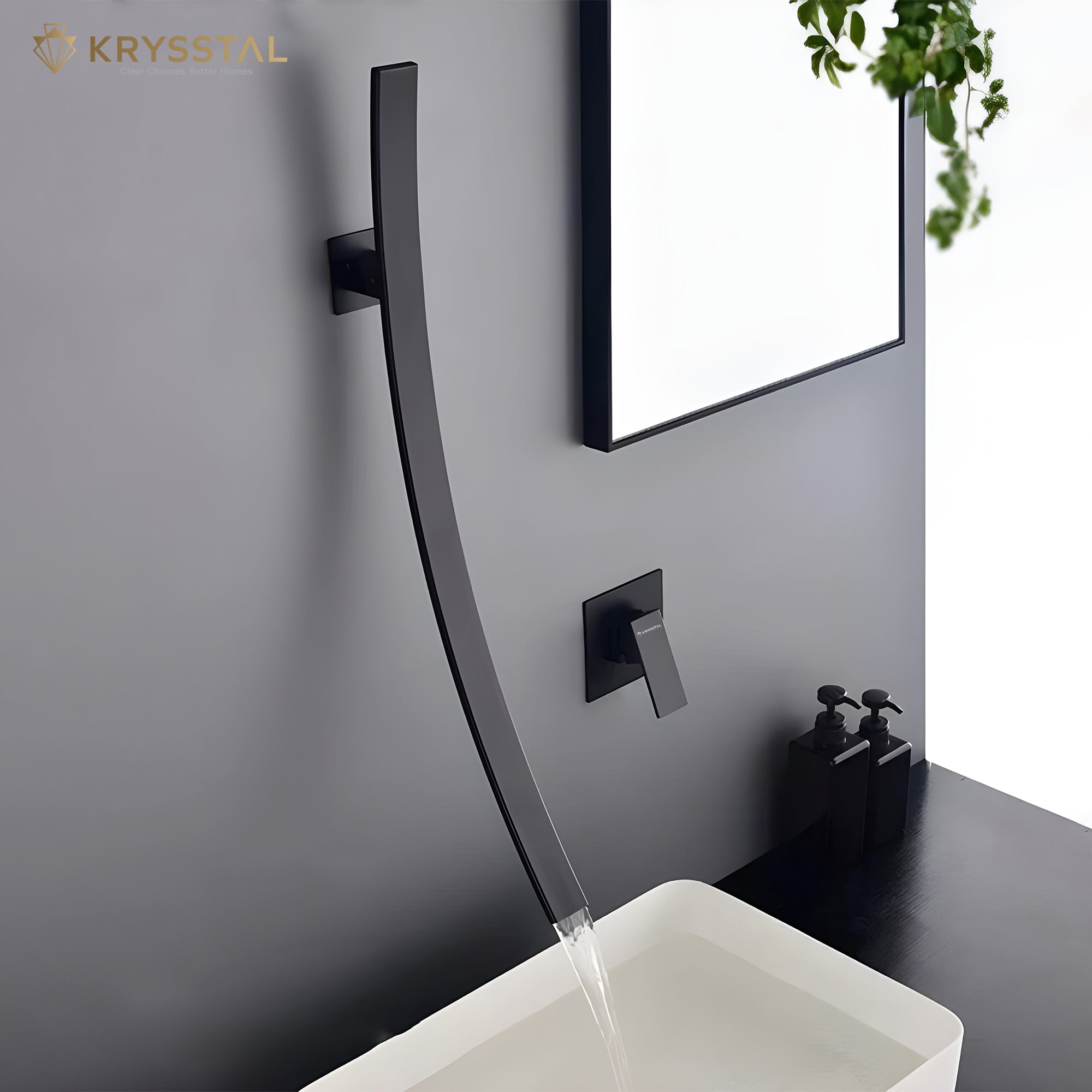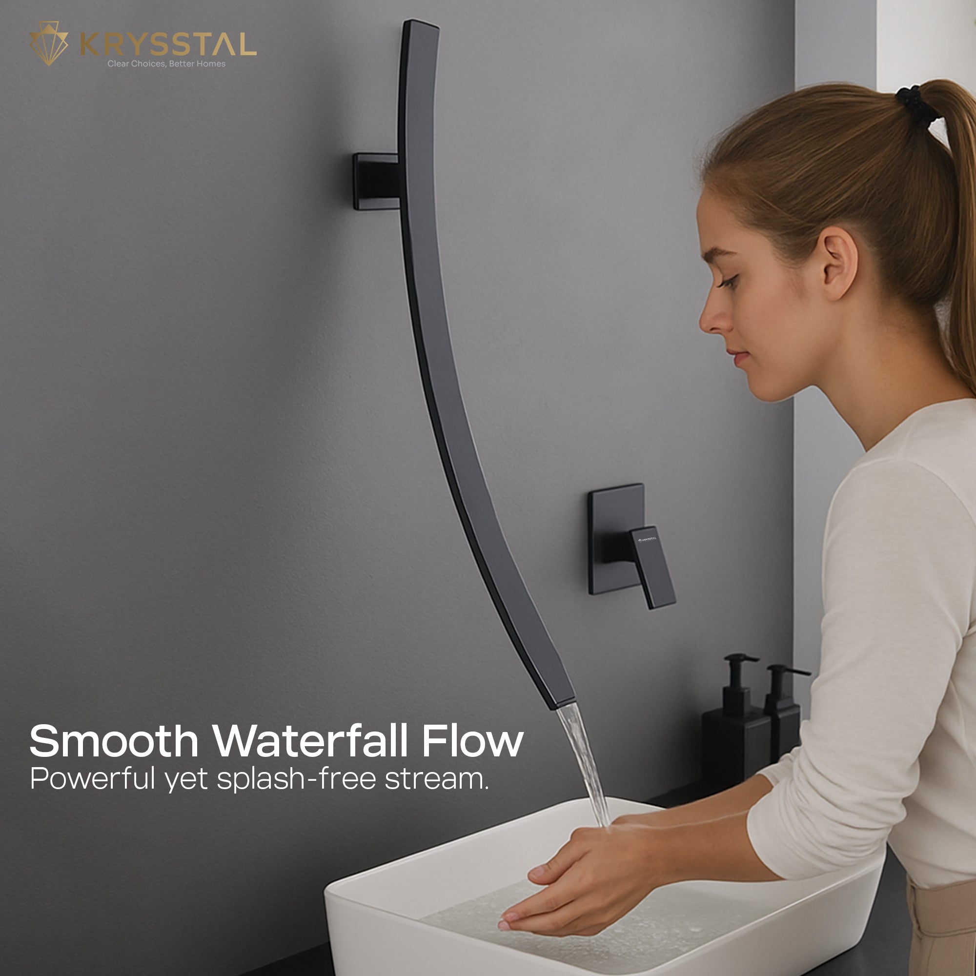 Crafted from solid brass, this wall-mount wash basin mixer tap combines durability with a sleek matte black finish that resists scratches and corrosion. Its waterfall spout offers a gentle, splash-free flow, while the integrated diverter and single-lever handle provide easy control over water temperature and flow. Designed for hygiene and style, it features an anti-fingerprint surface that stays clean and modern in any bathroom.