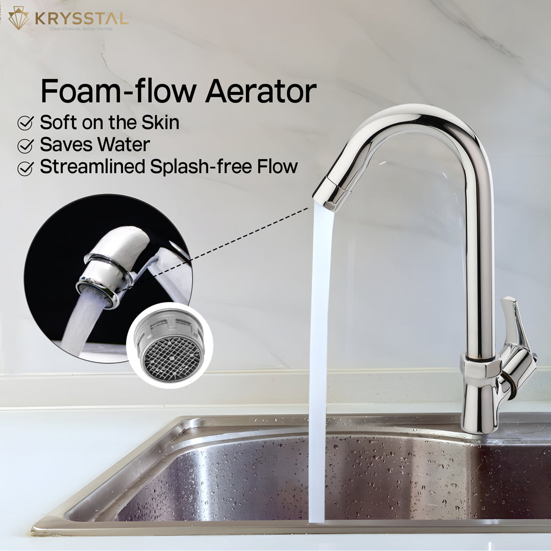 KRYSSTAL kitchen sink mixer faucets are made using 304-grade stainless steel and brass ingots, ensuring exceptional durability, rust resistance, and a sleek, polished appearance.