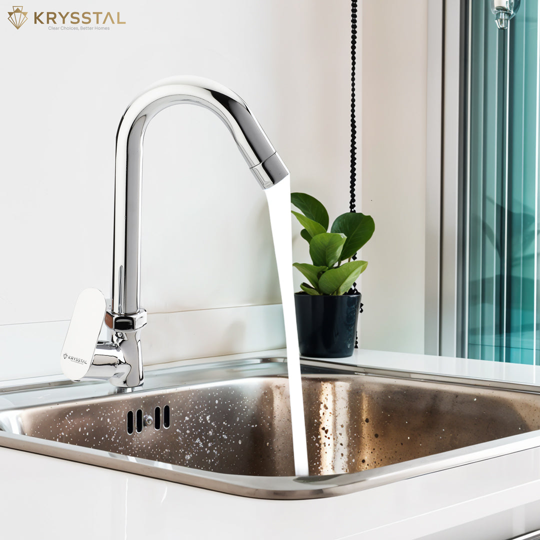 KRYSSTAL kitchen sink mixer faucets are made using 304-grade stainless steel and brass ingots, ensuring exceptional durability, rust resistance, and a sleek, polished appearance.