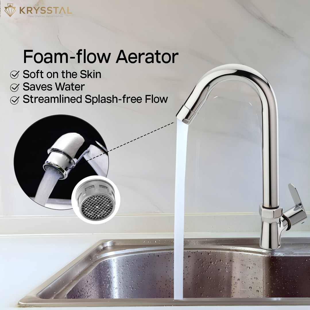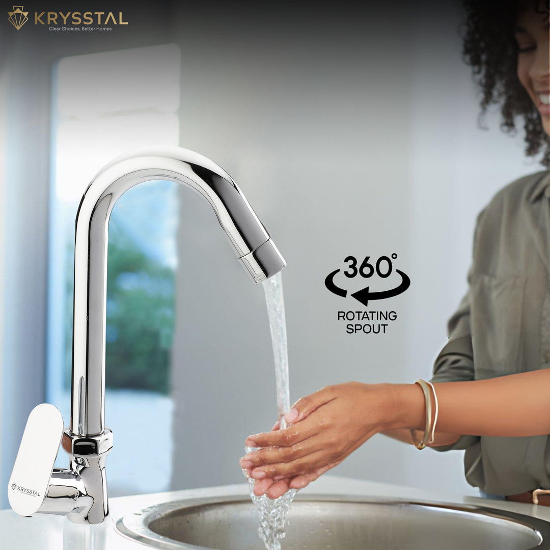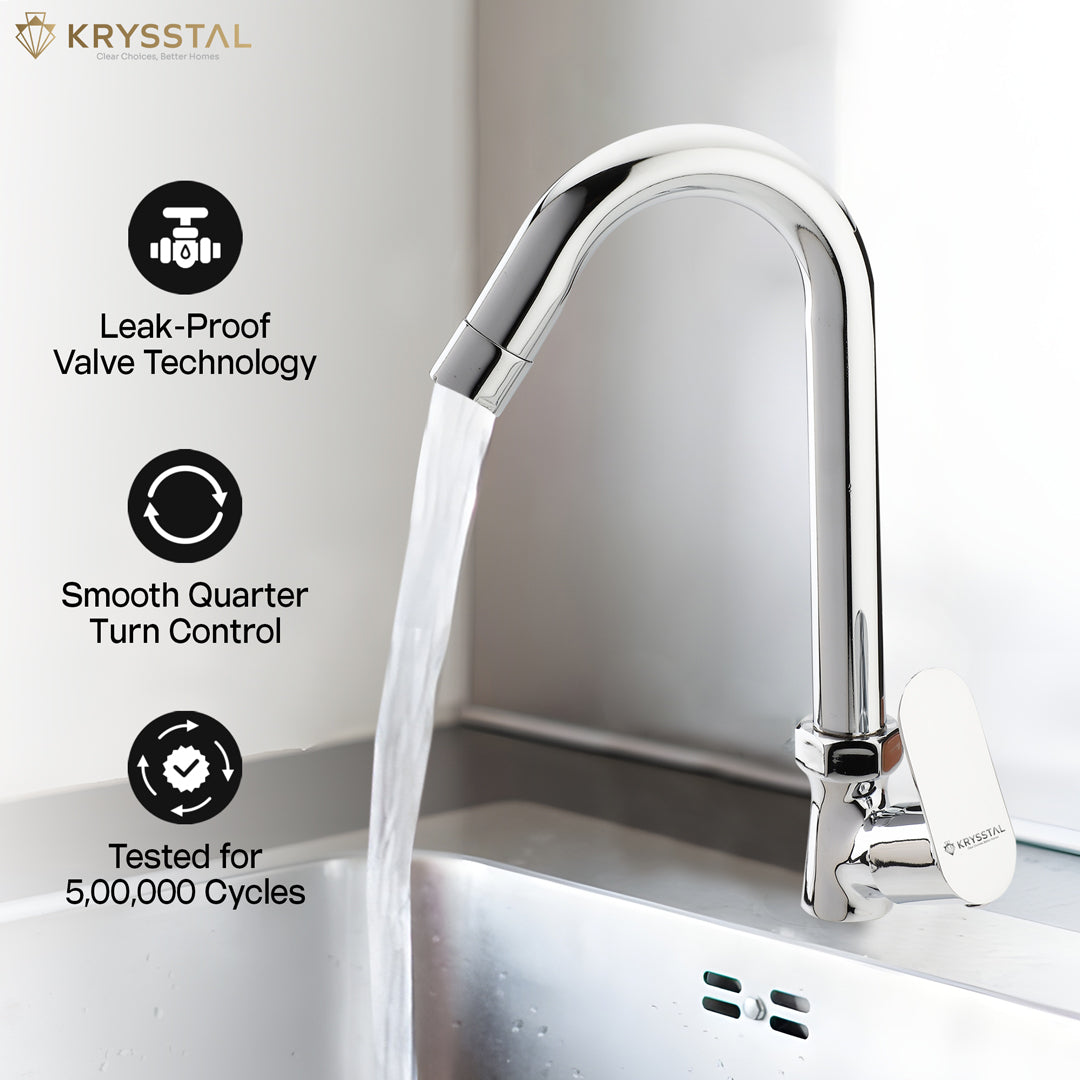 MATERIAL & FINISH: Swan Neck Tap is built with solid brass ingot, coated with a triple-layer chrome finish — that efficiently resists rusting, corrosion and heat; engineered for durability.