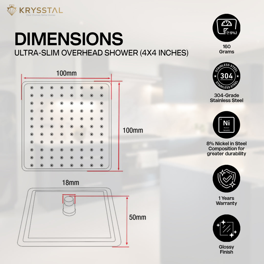 Ultra Slim (4" x 4") Overhead Rain Shower
