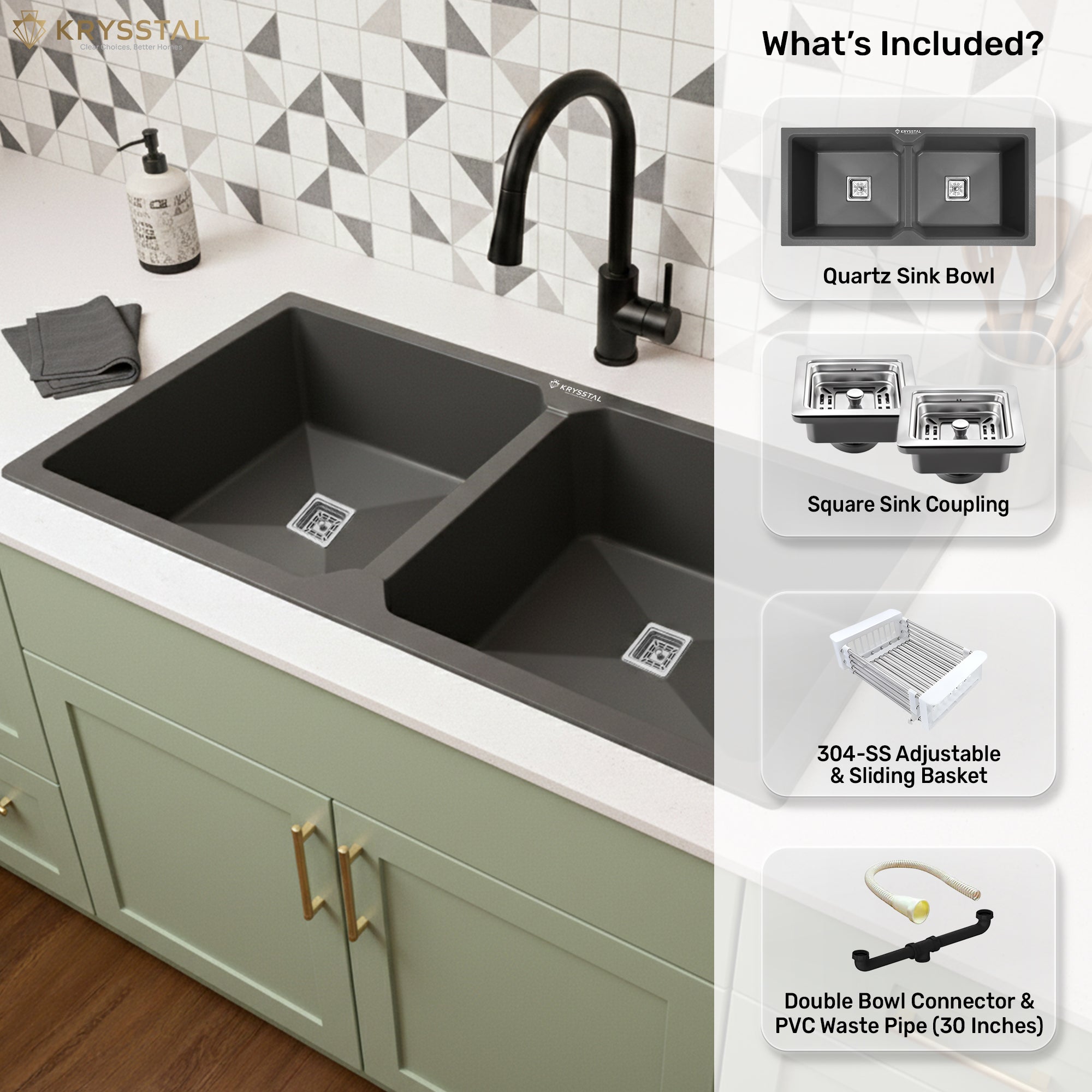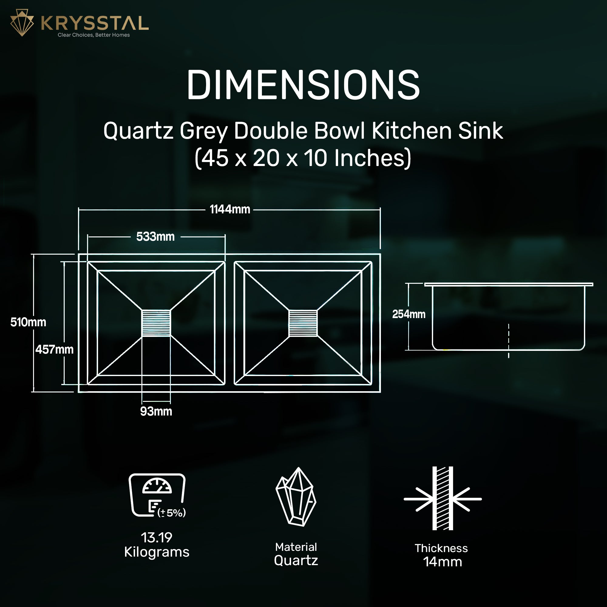 Quartz Grey (45 x 20 x 10 Inches) Double Bowl Kitchen Sink