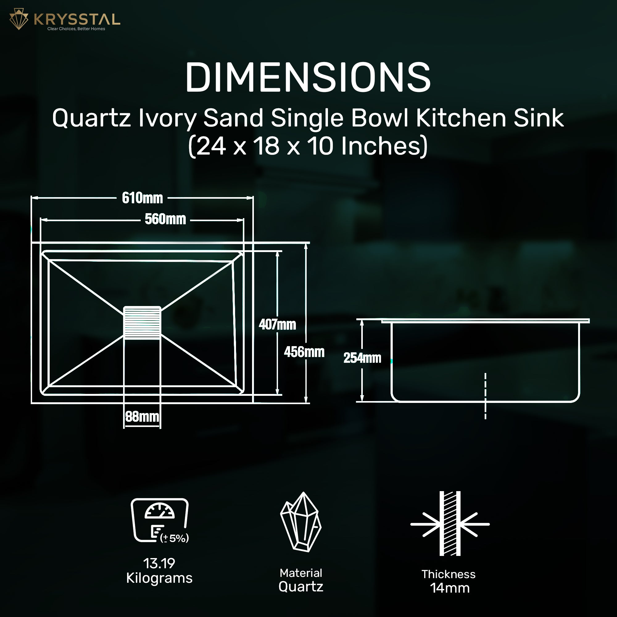Quartz Ivory Sand (24 x 18 x 10 Inches) Single Bowl Kitchen Sink
