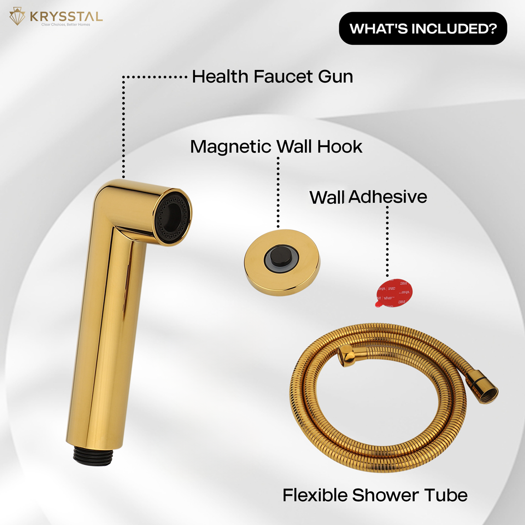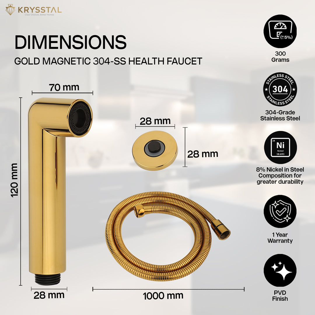 Gold Magnetic 304-SS Health Faucet with Shower Tube (1m) & No-Drill Wall Hook