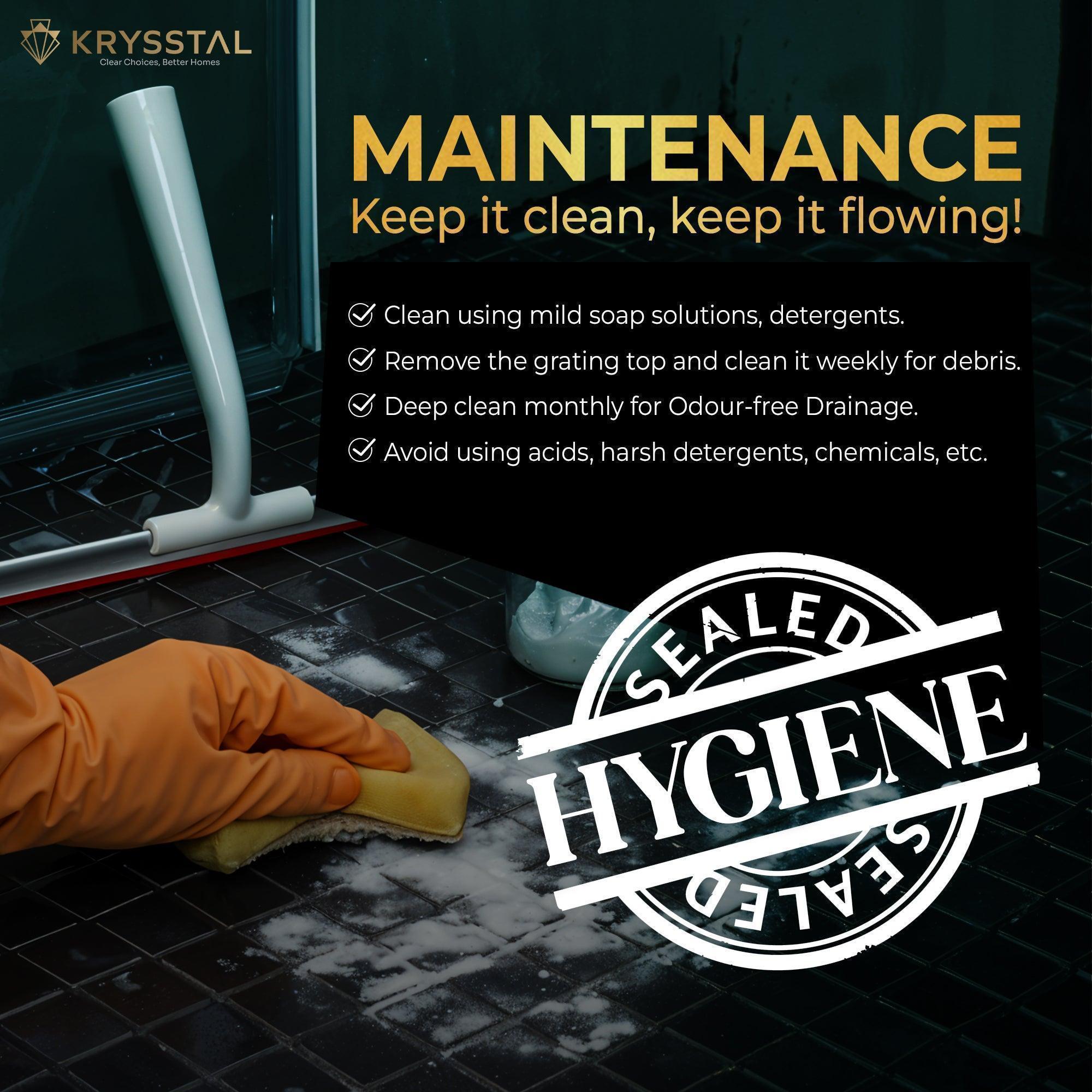 Made from solid 304-grade stainless steel with 8% Nickel content, this drain features a brushed matte finish and offers high resistance to rust, corrosion, foul odours, and blockages.