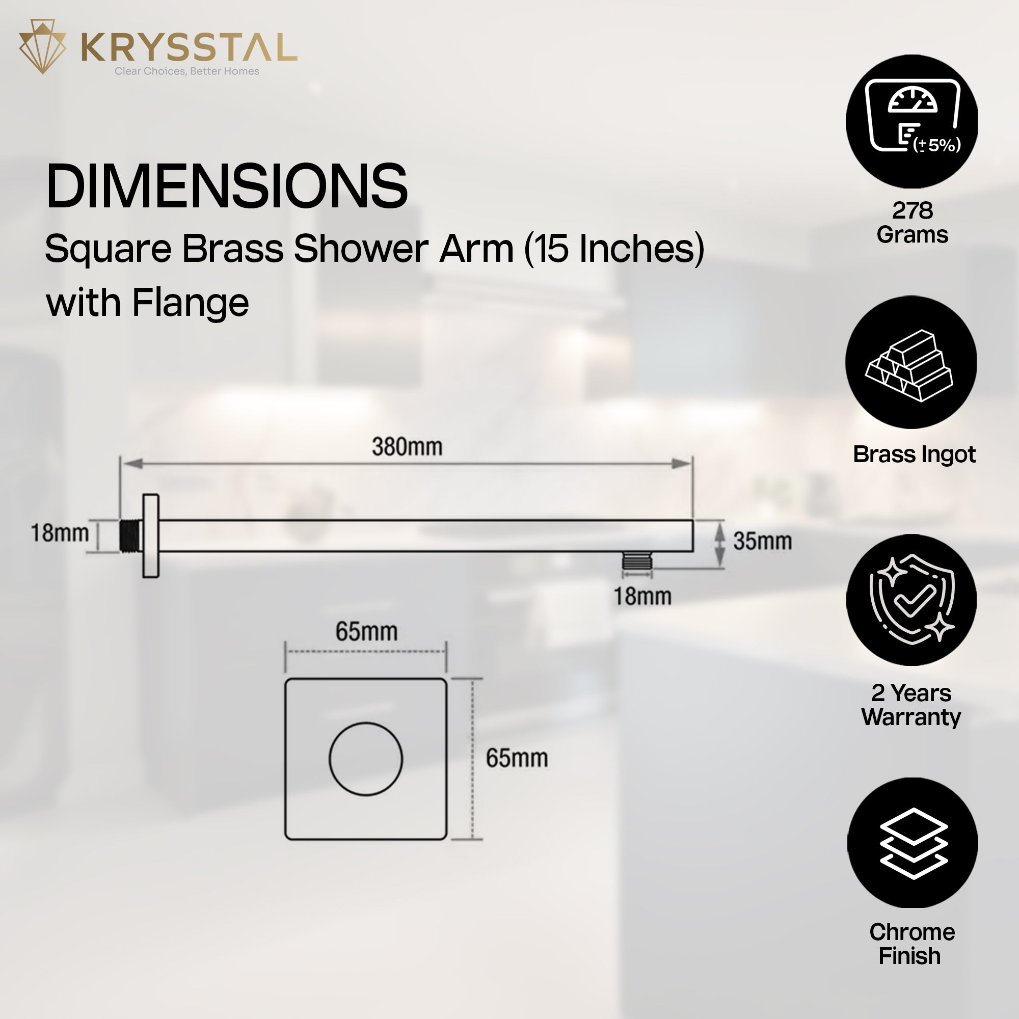 A. Yes. Every model of Krysstal’s Square Shower Arm includes a square flange for a modern aesthetic and full wall-cover coverage.