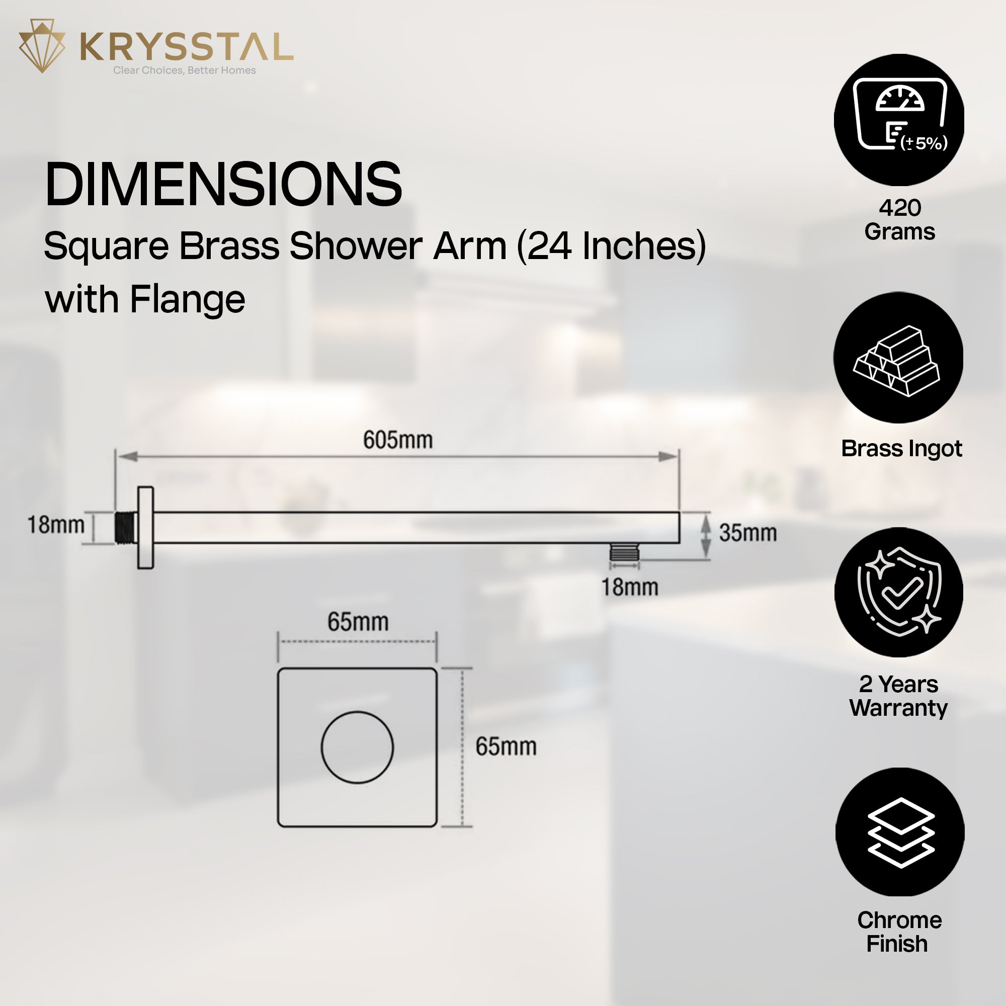 Yes. Every model of Krysstal’s Square Shower Arm includes a square flange for a modern aesthetic and full wall-cover coverage.