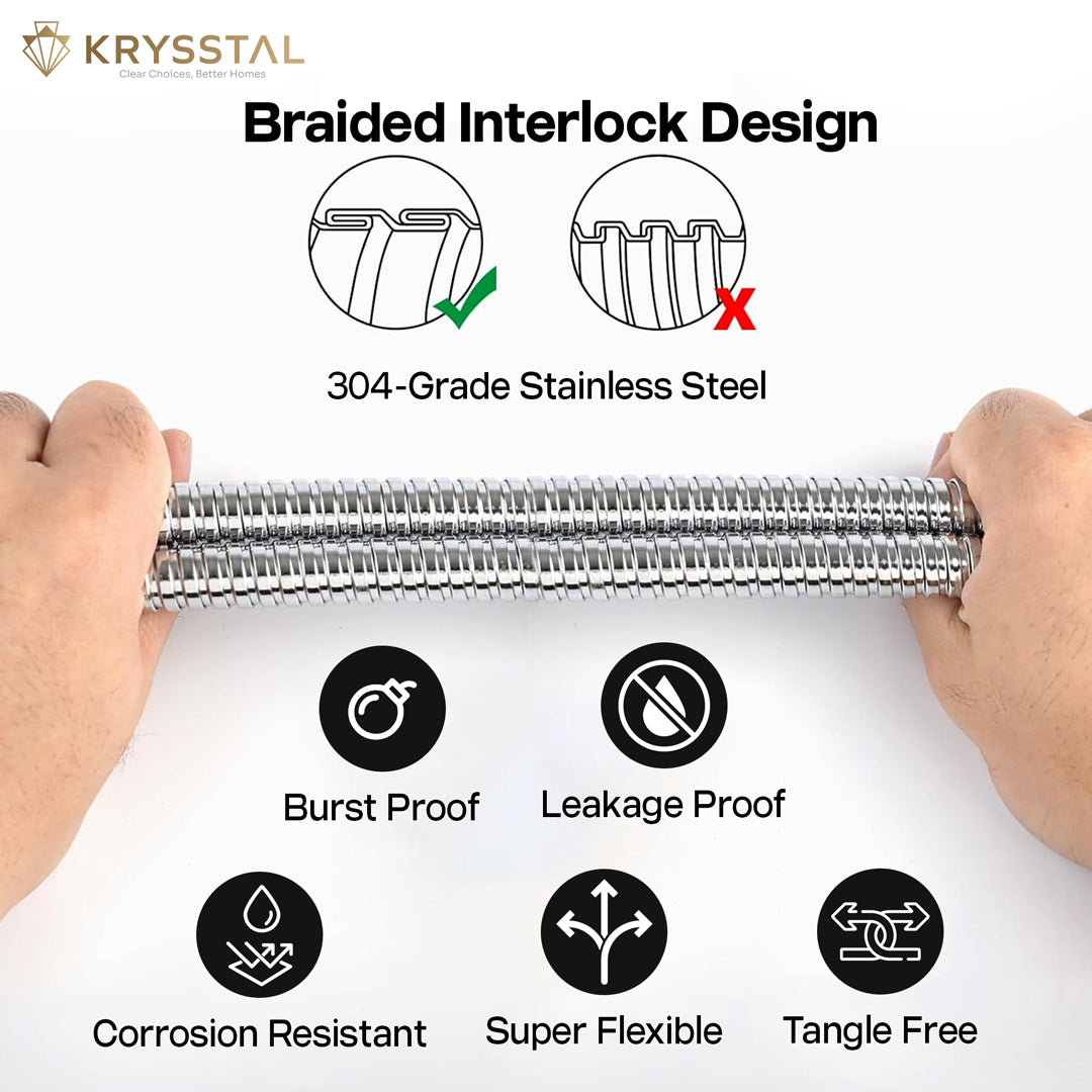 This 1.5-meter shower tube is made from durable 304-grade stainless steel, ensuring strength and flexibility. Its reinforced inner EPDM pipe provides smooth water flow and resists wear and heat. Designed to resist leaks, bursts, and tangles, it fits all standard health faucets and hand showers. Easy to install without tools, this tube offers reliable performance and effortless use.