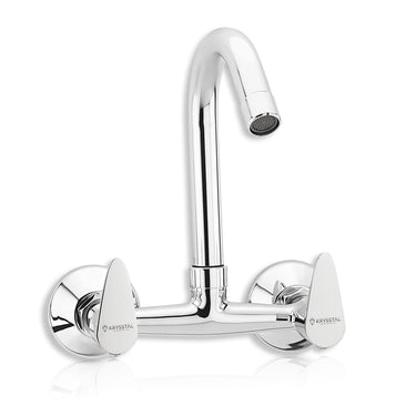 Double handle wall mount mixer taps allow better control over hot and cold water mixing, save counter space, and add a classic yet functional look to kitchen spaces.