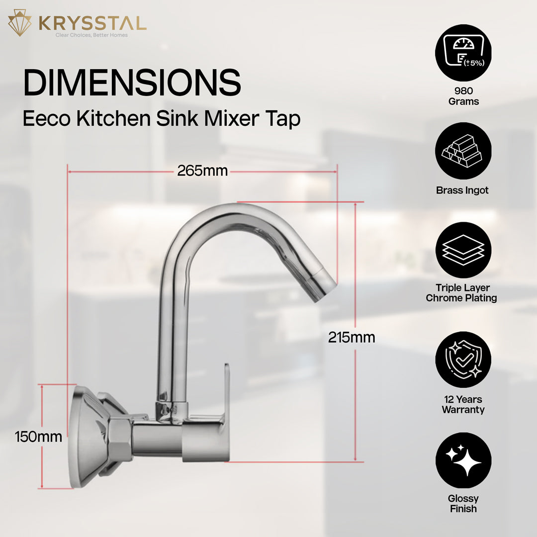 The Eeco Kitchen Sink Mixer Tap is made from solid brass with a durable triple-layer chrome finish that resists rust, corrosion, and heat. Its water-saving aerator reduces water use by 50% while minimizing splashes and noise. Separate hot and cold handles allow easy temperature control. The 360° rotating spout offers full flexibility for washing and filling tasks. Built to last over 500,000 uses, it provides leak-free performance and is simple to clean, keeping your kitchen looking fresh and efficient.