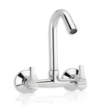 Double handle wall mount mixer taps allow better control over hot and cold water mixing, save counter space, and add a classic yet functional look to kitchen spaces.