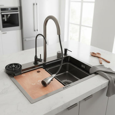 KRYSSTAL smart sinks are made from authentic 304-grade stainless steel, known for its superior durability, resistance to rust, and long-lasting premium finish. This ensures the sink remains in excellent condition for years, even with heavy use.