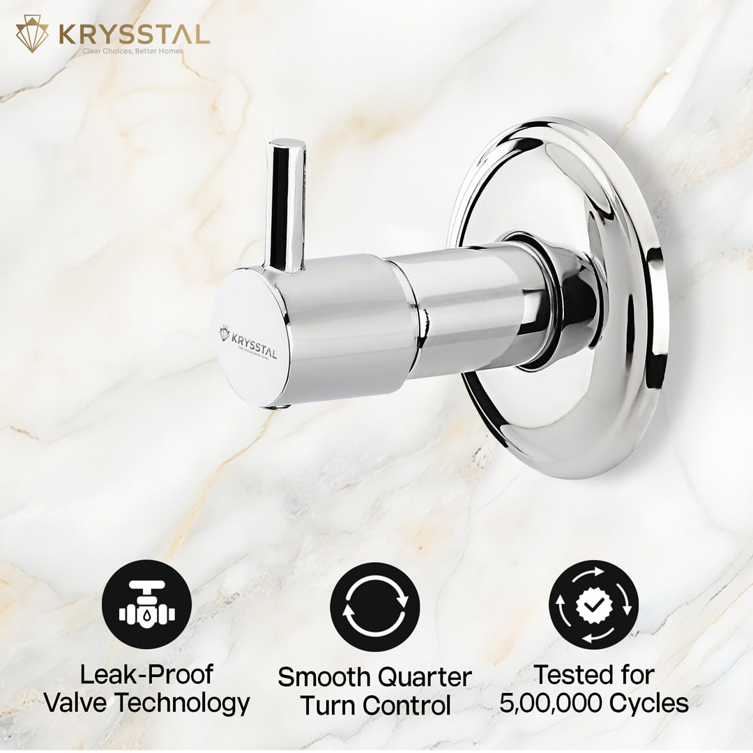 A. KRYSSTALs stop valve is crafted from premium-grade brass ingot and finished with high-quality chrome plating, ensuring long-term durability, rust resistance, and a polished appearance.