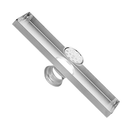 The Tile-Insert 304-SS Center Hole Shower Drain Channel is made from durable 304-grade stainless steel with a rust-resistant matte finish. Its advanced cockroach trap catches hair and debris, preventing pests, odors, and clogs for smooth drainage. Designed for fast water flow, it stops water pooling and keeps your bathroom floor dry. The drain fits seamlessly with your floor for a clean, modern look, making it a practical and stylish addition to your bathroom.