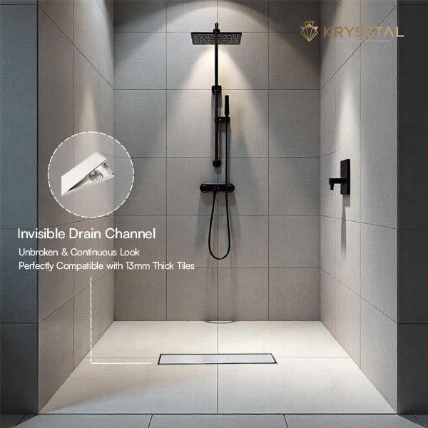 • AQUA-VAULT TECHNOLOGY: Linear Drain Channels are designed to handle heavy water flow, it ensures quick drainage, preventing water pooling and keeping your bathroom floor dry.